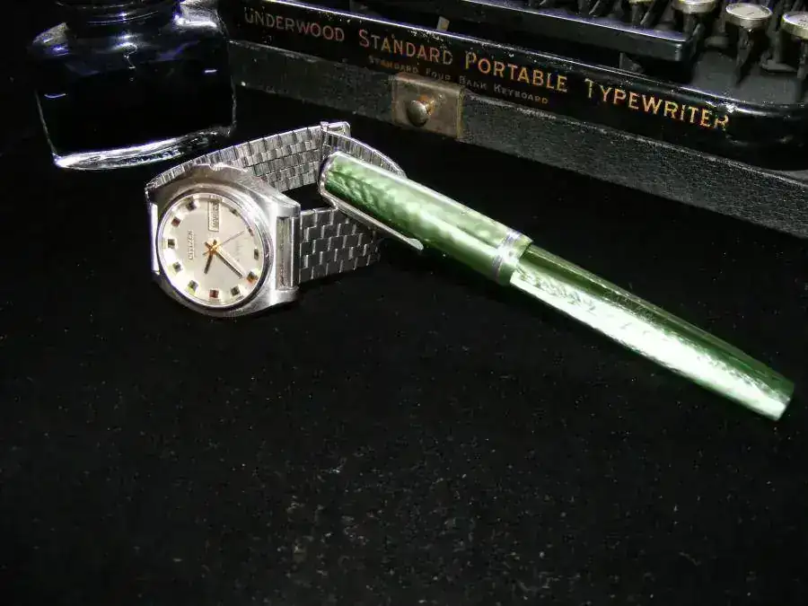 Va estupenda, estoy encantado con ella. Ahora la tengo cargada con una tinta un poco especial, Sailor Rikyu-Cha, un verde edición de verano de 2010 bastante buscado por el sombreado marrón con brillo cobrizo que hace.Jolin que buen conjunto el de ese Hami con esa TWSBI. Que tal va esa TWSBI?