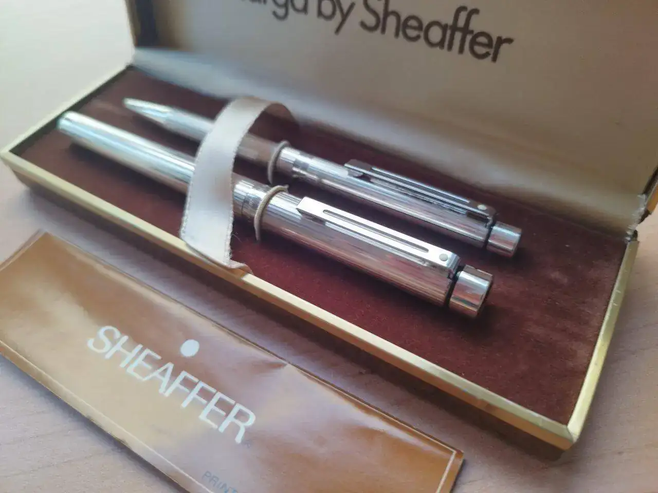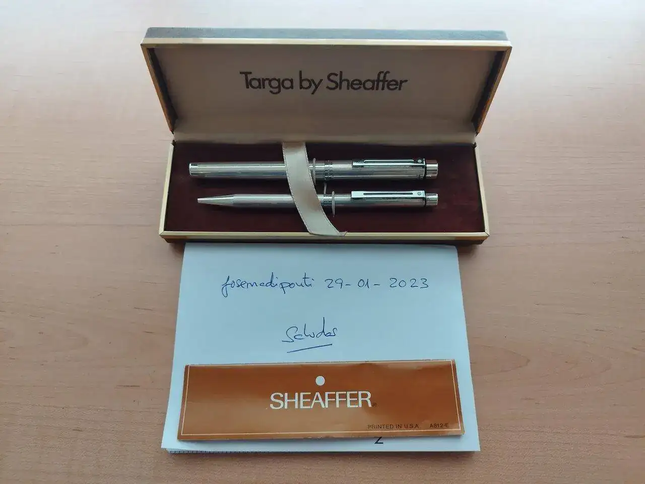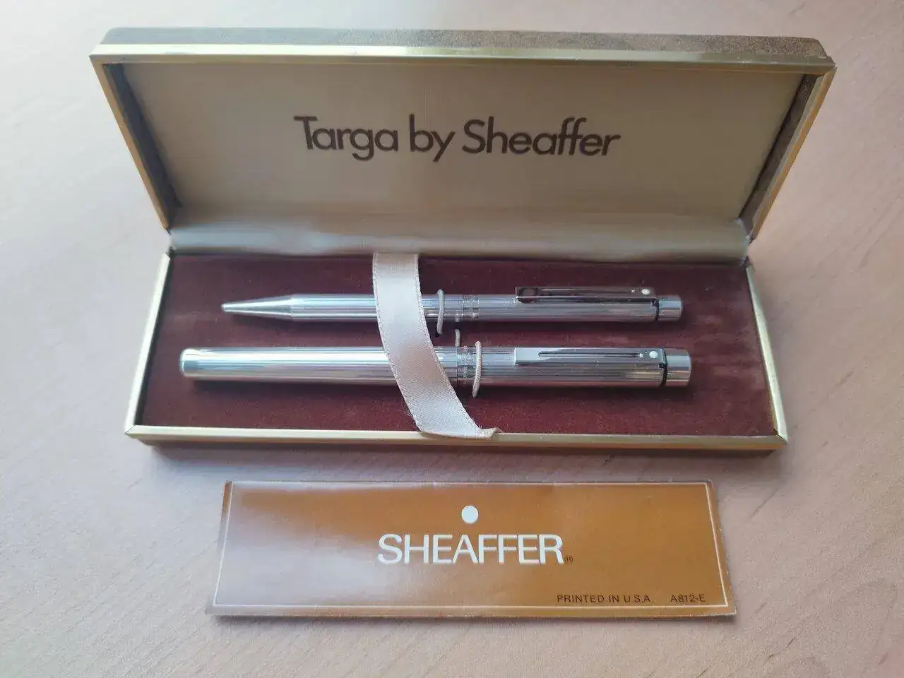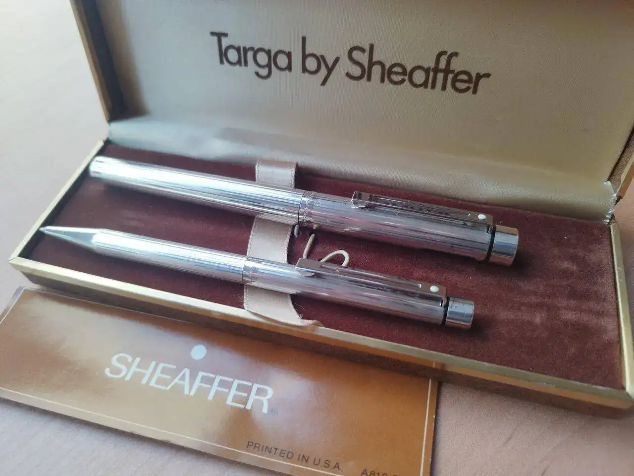 Se vende este Set vintage Targa de Sheaffer Bolígrafo + Roller vintage....nunca se ha usado Manufacturados en plata de leí...Made in USA..