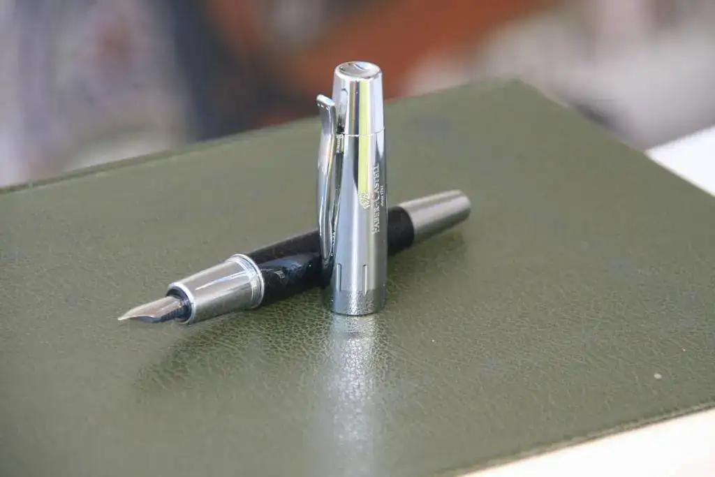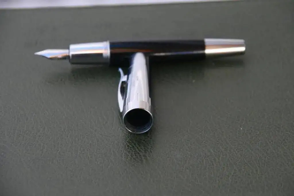 La estilográfica tiene un excelente plumín de acero con punto M. Excelente escritura. Carga mediante convertidor incluido.
