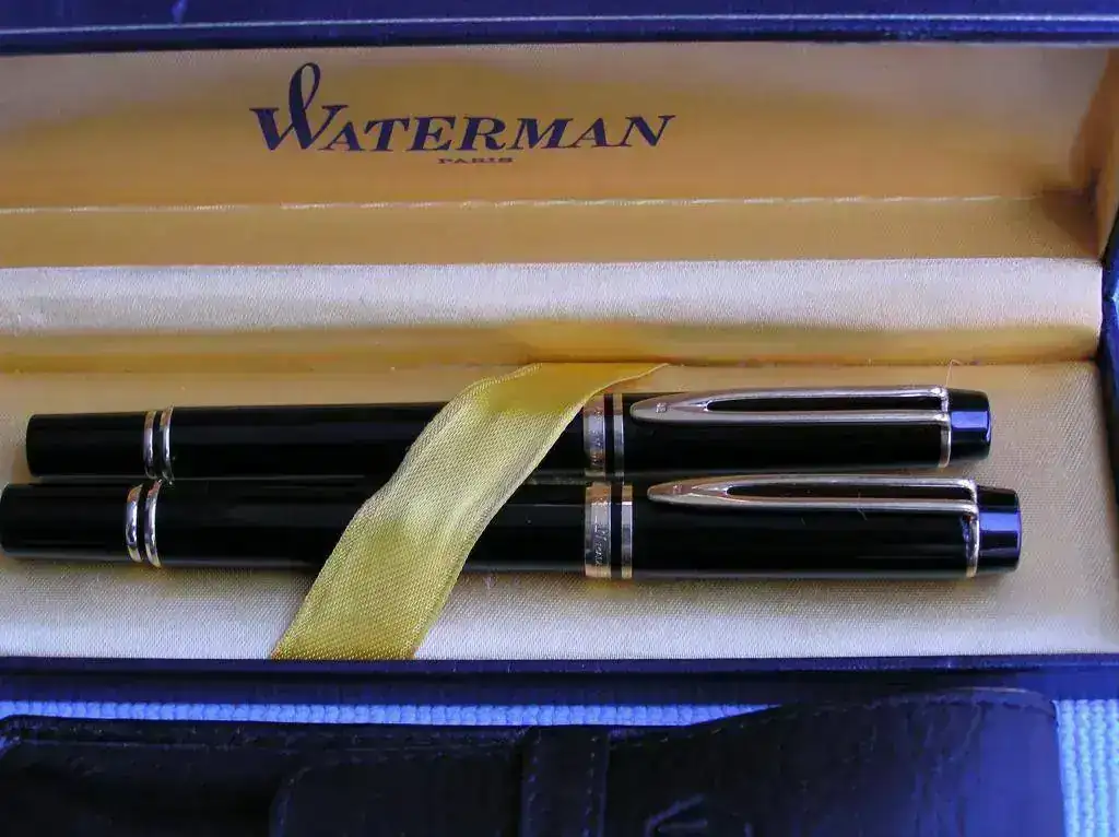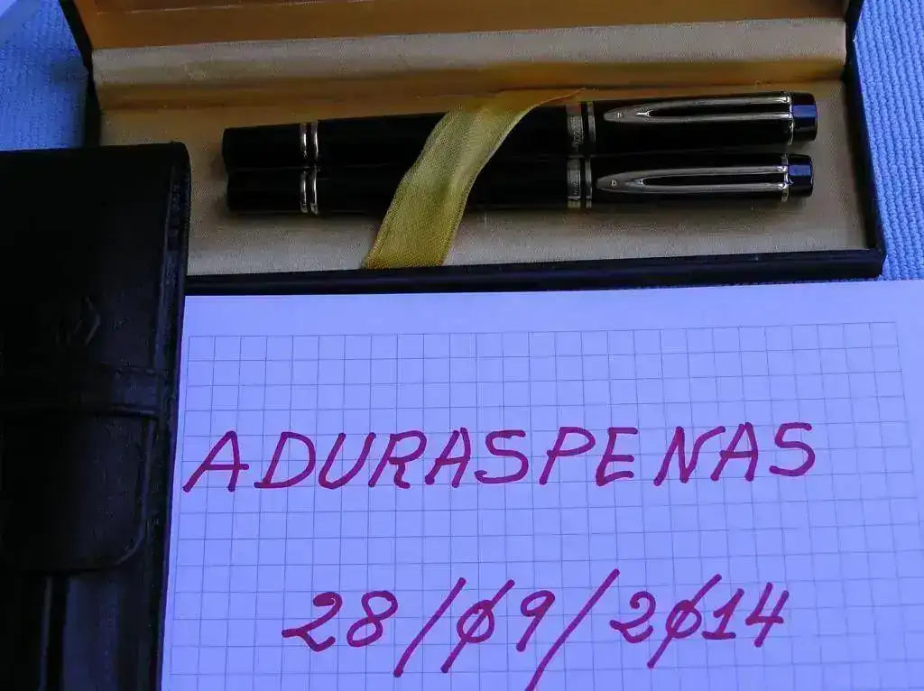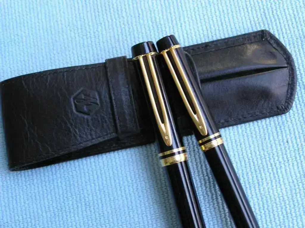 Con el conjunto va también una funda Waterman nueva de piel con capacidad para 2 piezas donde ambas encajan perfectamente.