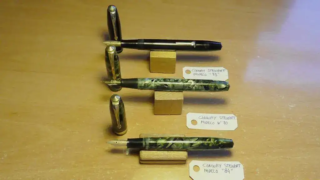 Eso confirma mi teoría, que cuando la copia es una burda imitación del original, es preferible el original, con sus ochenta años a cuestas, sus materiales cuasi eternos, sus plumines de oro flexibles y rígidos funcionando como el primer día que los troquelaron, y ademas durante la 2ª Guerra Mundial la fábrica Conway Stewart fuerón bombardeados por los alemanes, y reanudaron la producción a los pocos días.