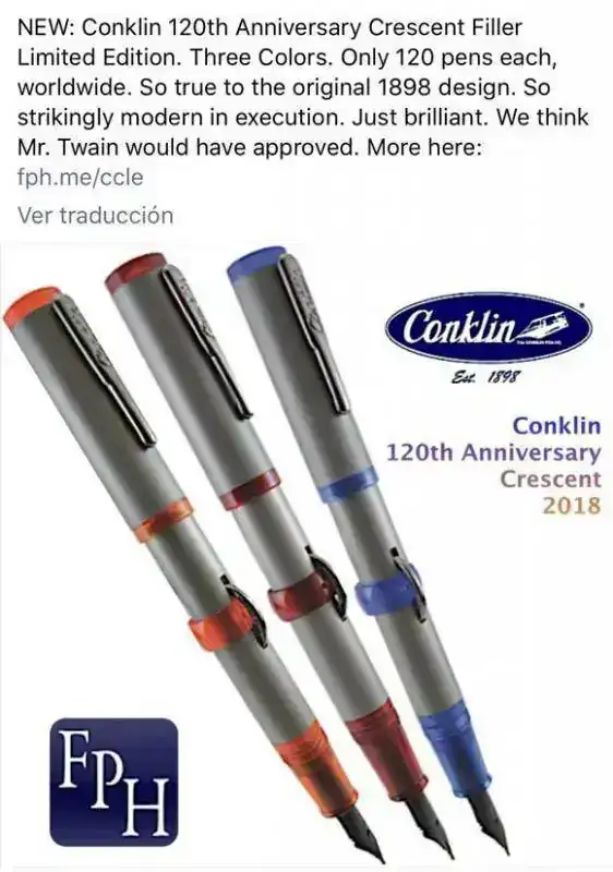 Si alguien desea ver la amplia gama de colores en las que se ha versionado el modelo estrella de la casa y otros menos conocidos, puede visitar su web (https://shop.conklinpens.com/). Encontrará cosas más razonables y otras no tanto.
