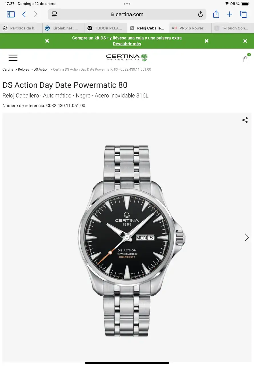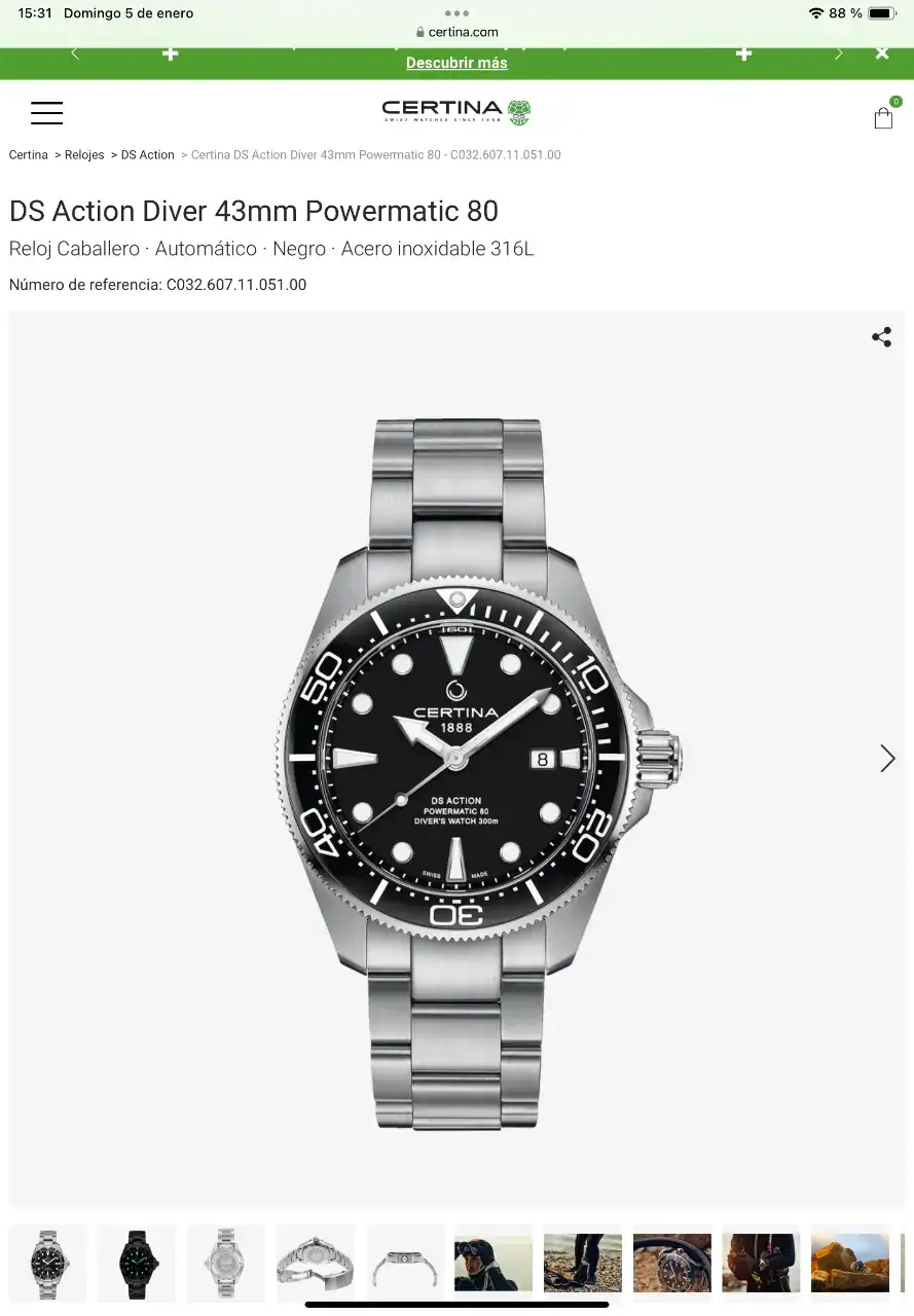 Lo he tenido en varias ocasiones y en distintas versiones tanto de tamaño como de acabado y te puedo decir que es un relojzo en toda regla.Muy buenas, tengo ahorrado en torno a los 1200 euros y estoy pensando en darme un capricho, me gusta bastante el Certina DS ACTION Powermatic 80 en color negro, qué opináis de este reloj? Y alguna alternativa de este tipo? Gracias de antemano.