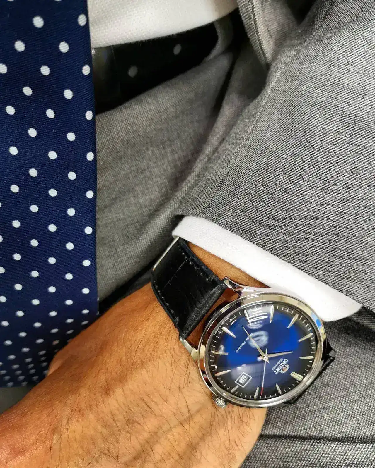 Pues me alegra mucho leer tus palabras y me identifico mucho con lo que dices. Y en especial con lo de que al final debe haber una armonía en el conjunto y que son muchos factores, y no solo el reloj, el que te aportan un aspecto elegante y equilibrado: buena combinación de colores entre corbata, traje y camisa, zapatos elegantes (y siempre limpios y brillantes), no juntar rayas con cuadros, una corbata sin motivos provocativos o infantiloides, o como bien apuntas, coincidencia entre el color del zapato, cinturón y correa.En mi opinión depende de hasta donde quieras llegar en el aspecto "formal". Un reloj "de vestir" en negro u otros colores de dial es perfectamente adecuado para llevar con traje y corbata en el ámbito laboral. A mí me parece más importante, por ejemplo, la coordinación del color de la correa, cinturón y zapatos que el dial. También el grosor del reloj, hoy en día muy condicionado porque los relojes mecánicos accesibles para la mayoría tienen grosores fuera de la lógica clásica. El diámetro también es discutible. Hay aficionados que hablan de máximos de 38 - 40 mm porque les van bien a ellos, porque los relojes clásicos raramente pasaban de 36 mm (a los mayores se les llamaba "jumbo's" por algún motivo)
