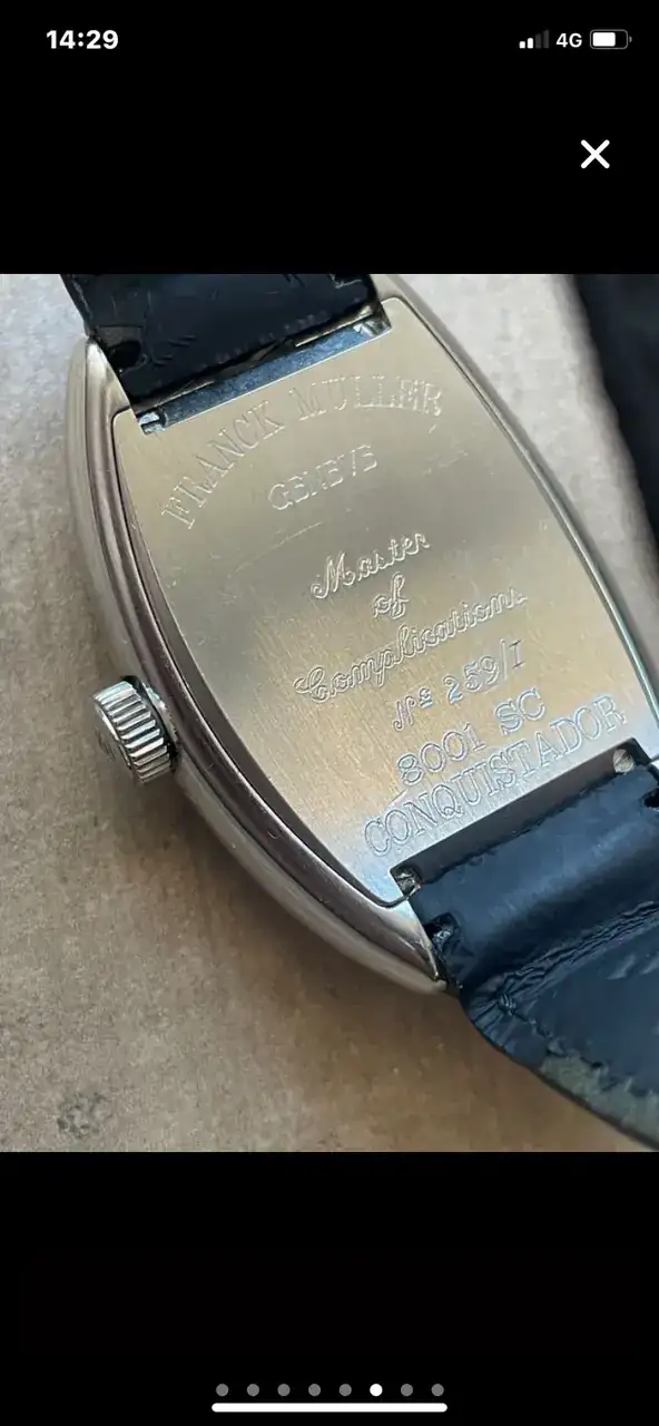 Me gustaría saber vuestra opinión al respecto de una compra que me estoy planteando. Se trata de un Franck Muller Conquistador de segunda ( o tercera, a saber) mano que venden por 3.000 €.