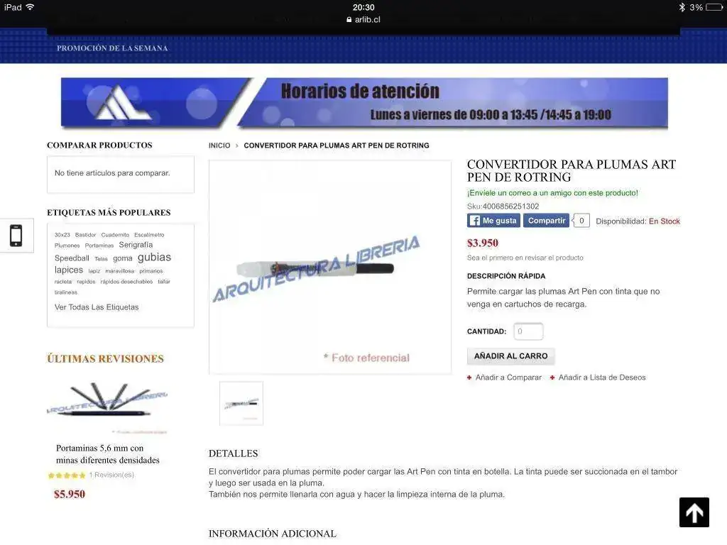 Hola bueno queria consultarles ya que supe que rotring usa cartuchos universales, enconte una libreria donde venden el convertidor para la pluma art pen por unos 5 euros, me gustaria saber si dicho convertidor es compatible con plumas de cartucho universal como mi schneider easy pen que uso para diario, ya que me gustaria probar colores como los waterman, rohrer and kligner o standargraph.