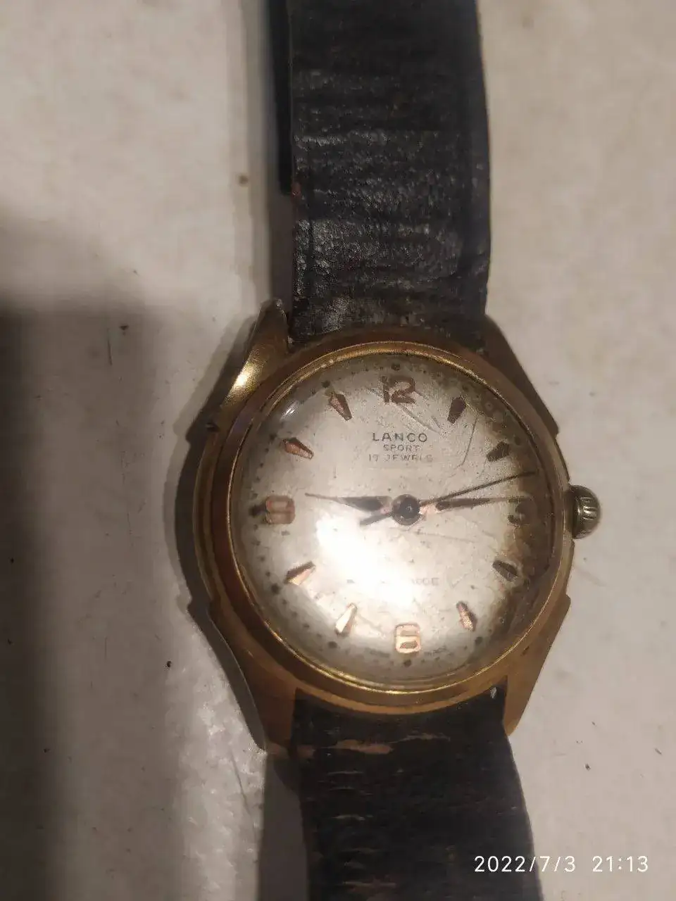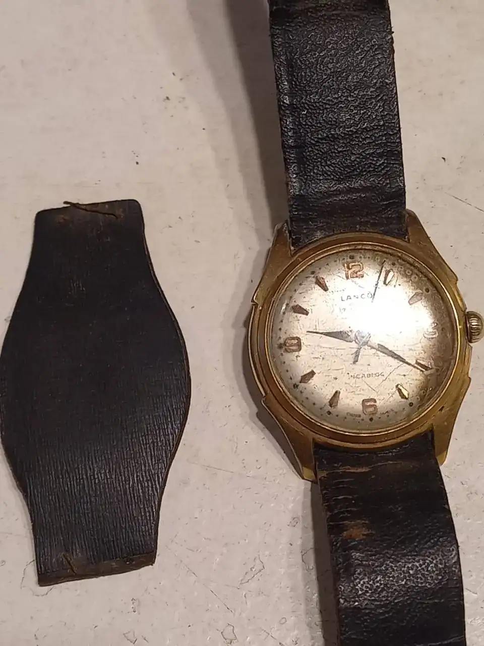 Perdón, aún no entiendo bien el mecanismo de la pagina por eso repito mi consulta aquí. Hola! Mas allá de mi gusto por los relojes antiguos, quería consultarles hace tiempo por un reloj Lanco que tengo herencia de mi abuelo. Lanco Sport 17 rubíes de malla entiendo tipo trinchera, busque bastante y no he encontrado el modelo. Atrás dice 475. Funciona muy bien a cuerda, la cuerda esta un poquitín dura, pero, le di unas vueltas anoche y aún funciona, quiero saber mas de él, me gustaría cambiarle la malla y limpiarlo un poco para usarlo. Mi abuelo me contaba que la especie de "tapa" se ponía sobre la carátula para que de noche (generalmente en guerra etc.) no hubieran reflejos del cristal. (tengo esa parte, de cuero, por separado, se ha roto) Subo fotos. Investigue sobre la empresa pero no hallo de qué año es este modelo. Si alguien sabe algún dato les agradeceré mucho.