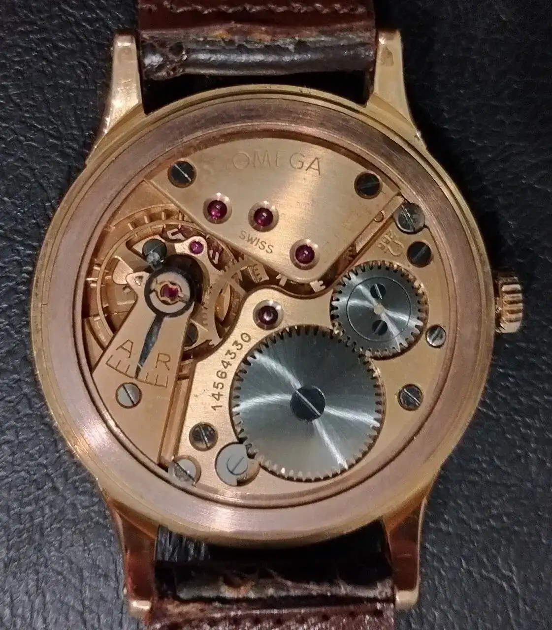 Estimados, necesitaría que por favor me orienten acerca del modelo y valor del siguiente reloj. Se trata de un Omega Cal. 266, la caja es de 37mm sin la corona, es del año 1954 de acuerdo al número de serie, es de oro rojo sólido de 18k, su correa es de cuero legítimo pero no es original, al igual que la hebilla que dudosamente sea de oro, funciona correctamente, Toda la descripción volcada es a partir de la información que pude obtener en la web, no soy un entendido.