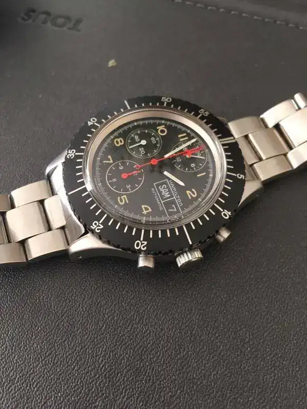 Se trata de un Hamilton Lemania 5100 Military que por lo que estoy indagando salio una producción muy pero que muy limitada a unas 200 piezas en Italia, por lo que es super exclusivo