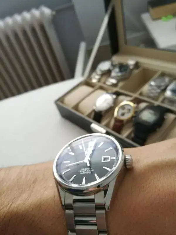 ). Lleva un calibre 7 de Tag que seguramente sera un ETA Modificado o algun Sellita no lo se así que cuanto me puedan decir sobre el calibre y su opinión sobre el reloj en general se los agradezco. El precio, bueno siempre mas caro que en la UE pero no demasiado así que dentro de todo esta bien asi que me estoy planteando hacerme con uno en estos dias, ya que tengo chronos, GMT, Divers . Fliegers, Asequibles, Cuarzos, etc pero no un reloj que combine un GMT con un reloj de vestir. Y como aun no estoy muy seguro y de ahí este hilo.