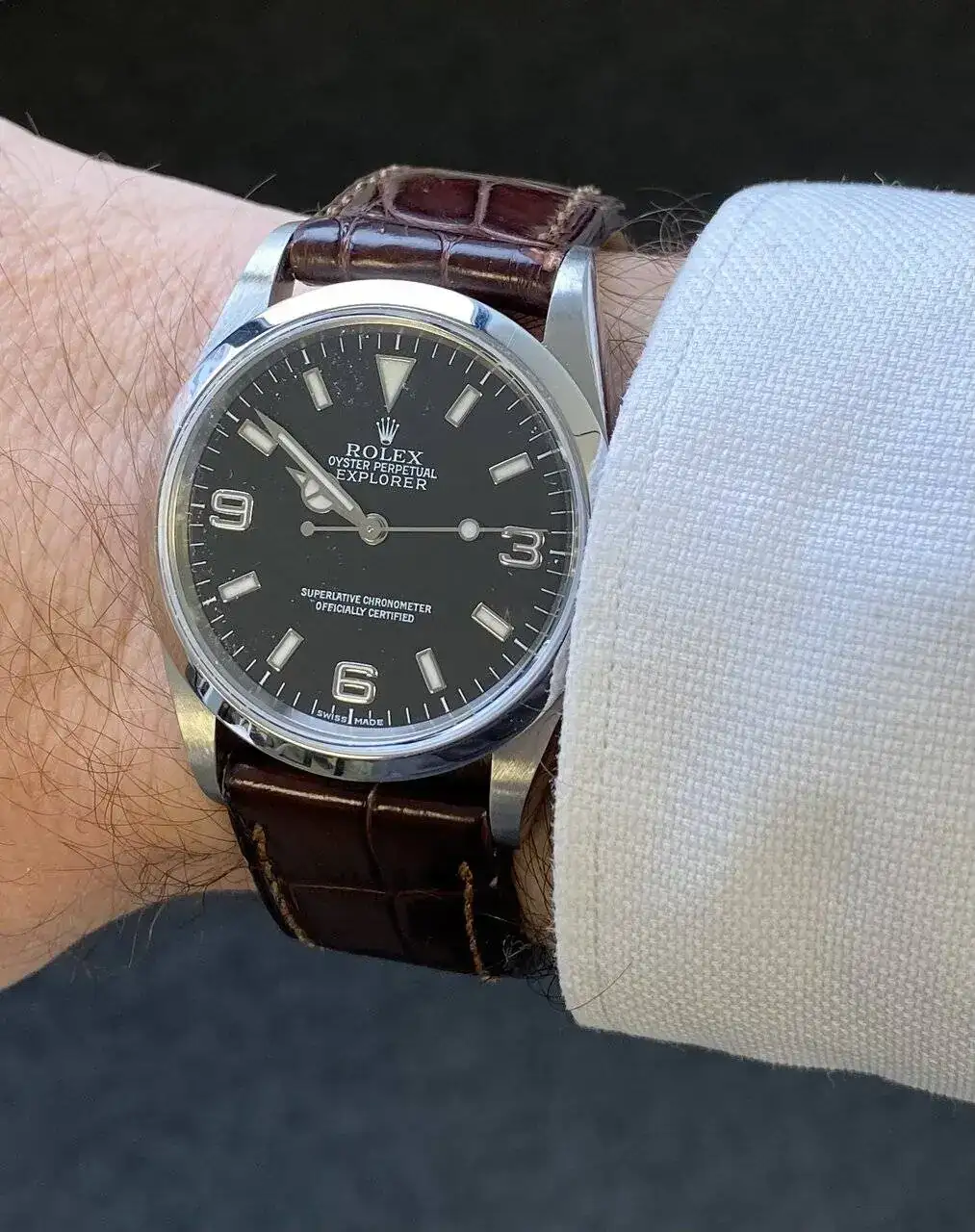 A lo que voy..., el año pasado le cambié el armis suyo por uno de piel color camel que siempre creí que le iría bien con su esfera plata y tenía esa curiosidad. Hice el cambio, y la verdad es que me gustó aunque mi mujer considera que es un sacrilegio.