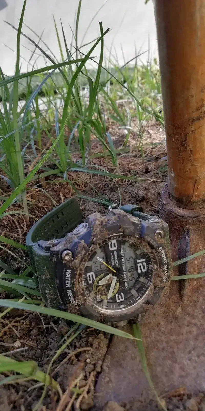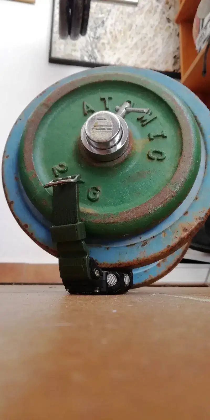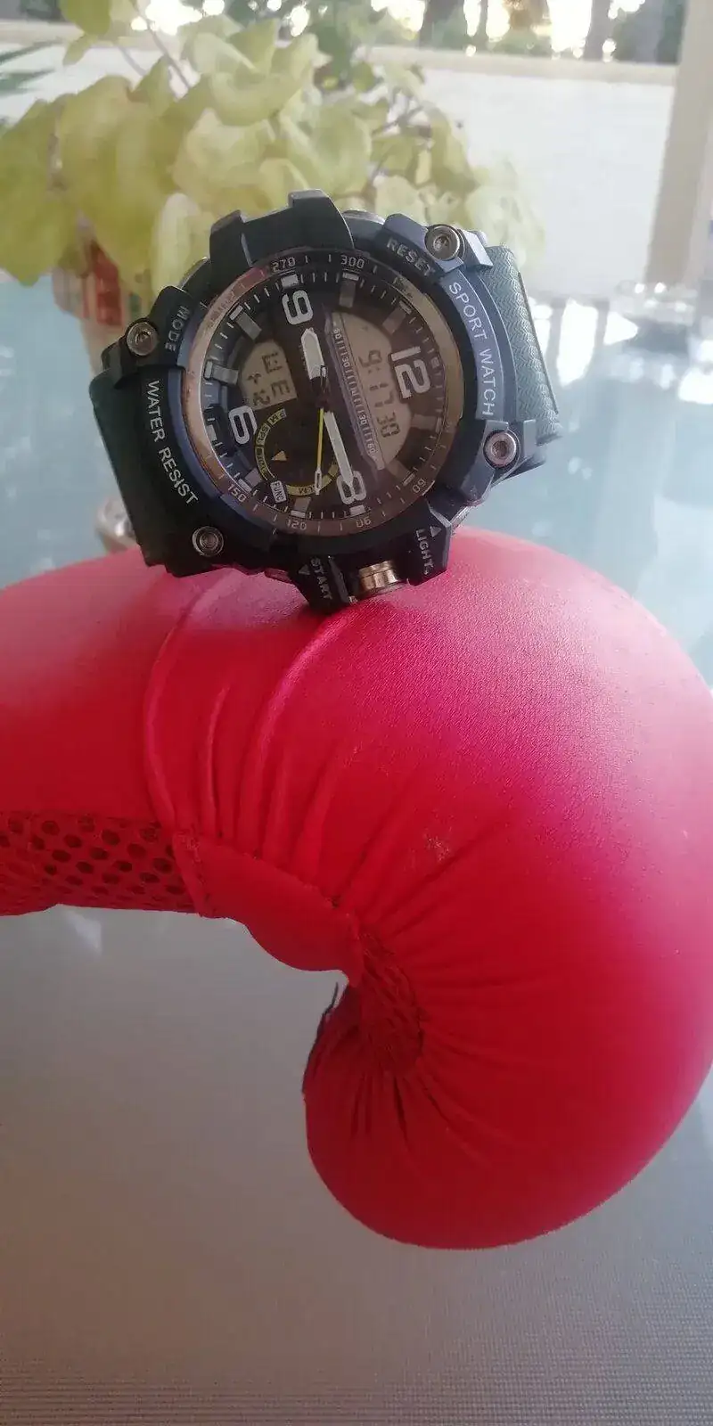 Lo hemos usado de sparring de boxeo contra el árbol del que colgaba. Tras unos asaltos duros el segundero se ha soltado y ha quedado colgando.