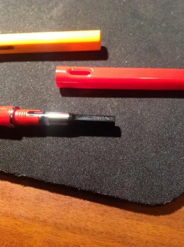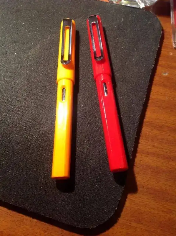 De camino al médico, me encontré en una papelería, estas plumas, copias descaradas de la lamy safari a un precio que me dejo alucinado: 3.10€, trayendo convertidor y todo... no pude por menos que comprar dos para probar en mis colores favoritos... (eso si, revisé el convertidor y le pedí cambiarlo en una, porque no me daba confianza, cosa que amablemente la dependienta me permitió)... las he cargado directamente con el convertidor porque desde la pluma no me dejaba y a los cinco minutos escribía como una campeona....