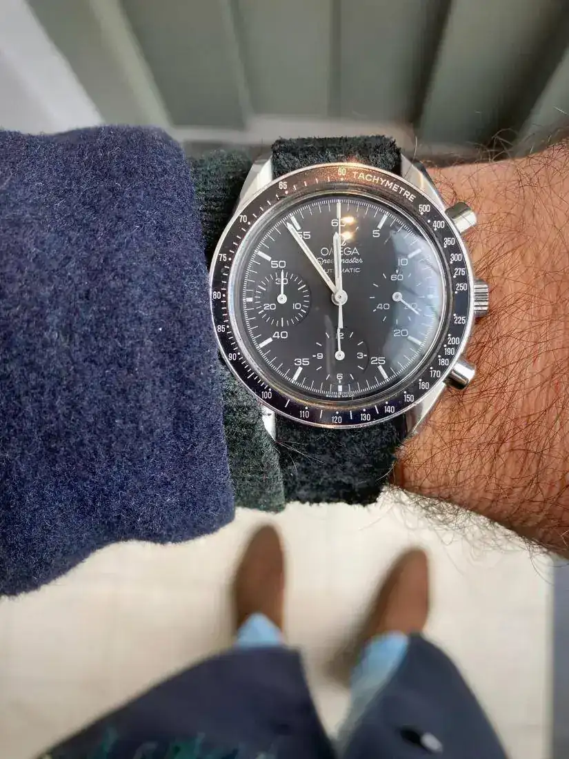 Creo además que la combinación ante-Speedmaster queda genial, ya que este reloj fue concebido pensado en los deportivos, y esta correa acentúa ese carácter.