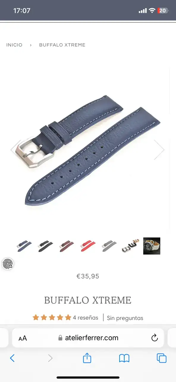 Del fabricante ATELIER FERRER está el modelo BUFFALO XTREME en color azul marino que me podría cuadrar (tengo la misma correa pero en negro y me gusta). Lo que mis dudas son: primero el color (si es lo suficientemente oscuro) y por otro el forro, antes daban la opción de hacerlo de caucho pero ahora sólo está la opción en piel.