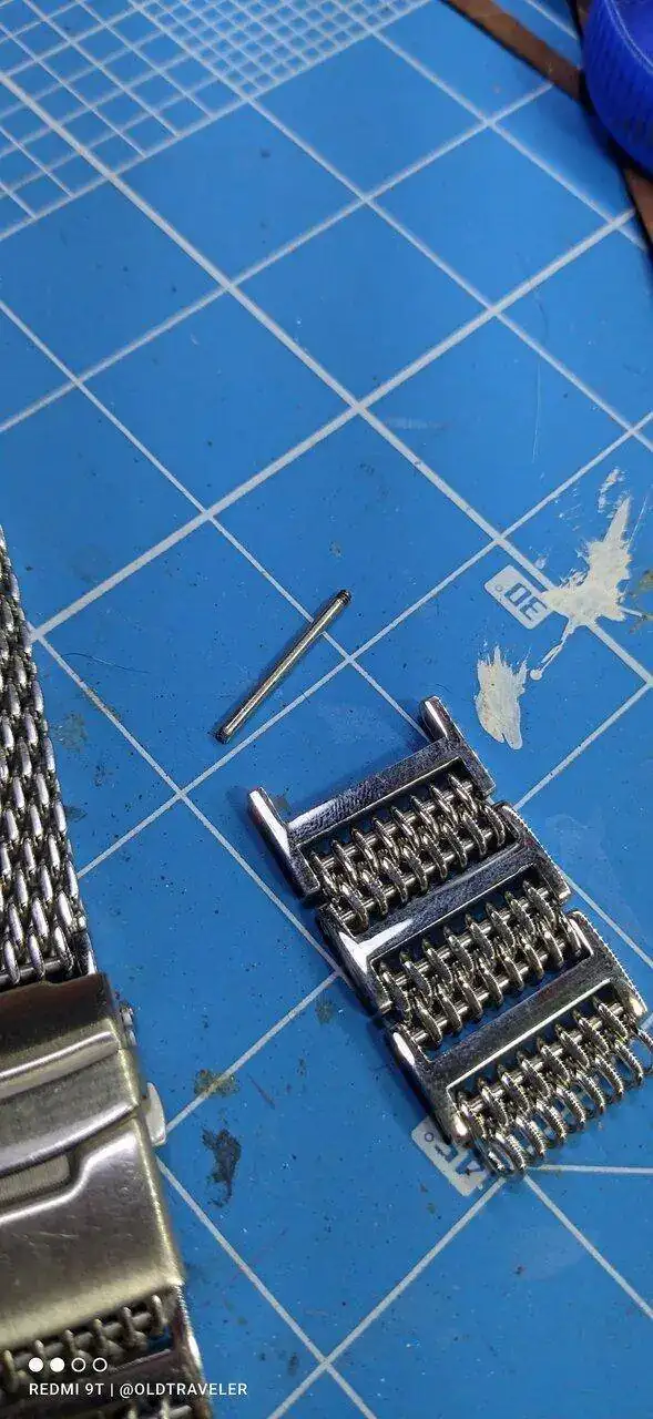 se puede ver la correa y los tramos que recorte, y los conectores en forma de "H", que se ajustaon con un tornillo que tambien puede verse en la imagen.