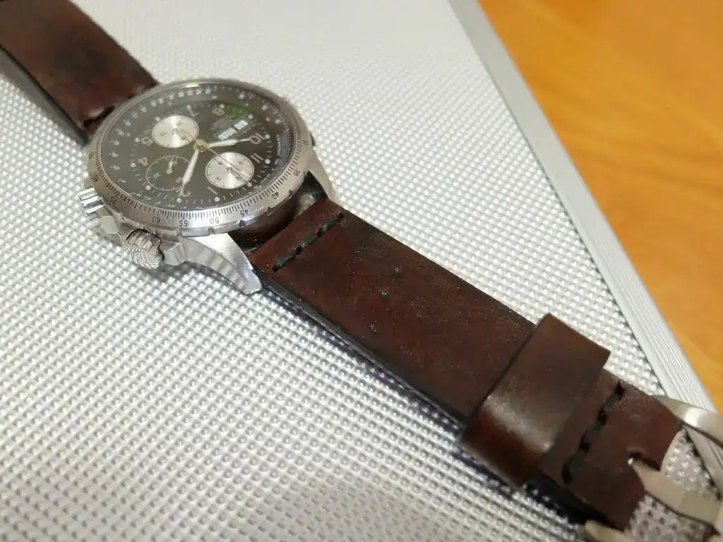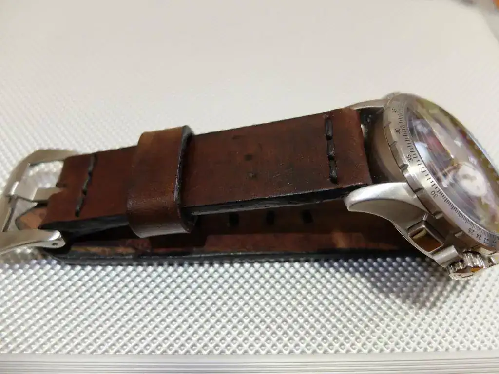 Hace tiempo le vi a un compañero de trabajo una correa un tanto especial. Era gruesa, oscura pero con sólo echarle un vistazo se notaba que era de un cuero de calidad y mucho más antiguo que el hilo con el que se había confeccionado la correa. No pensaba preguntarle ya que cada vez que le pregunto a alguien sobre su reloj normalmente me contesta "no se, fui una tarde a una relojería y cogí el que vi que me gustaba" o el tan manido "me lo regalaron por navidad/cumpleaños/introduzca fecha random".
