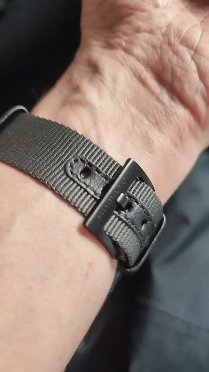 En la página oficial de Hamilton venden la nato original en varios tamaños, si el estándar te parece grande seguro que una más pequeña le irá perfecto. Esa correa al tener el final con el adorno de piel no sé si quedará muy bien el doblarla y sujetarla en la trabilla, además que no se verá el detalle de piel…