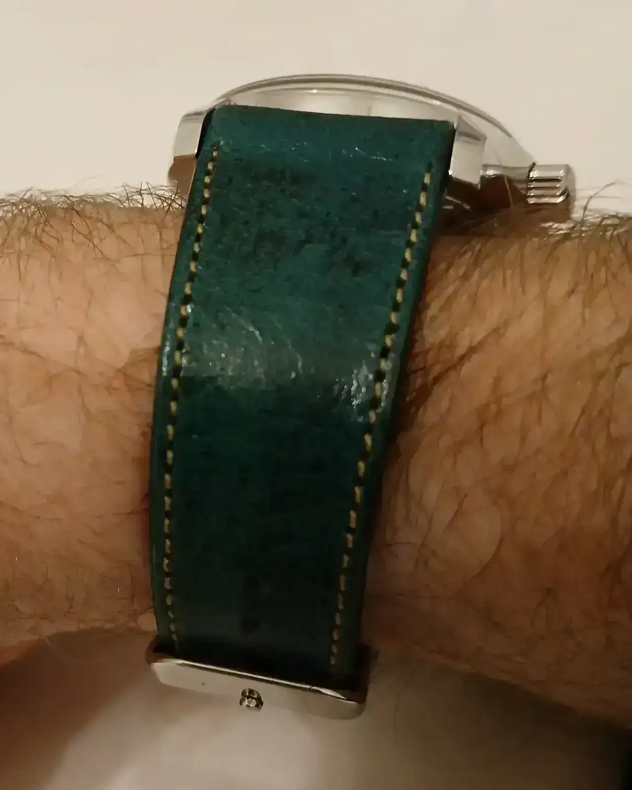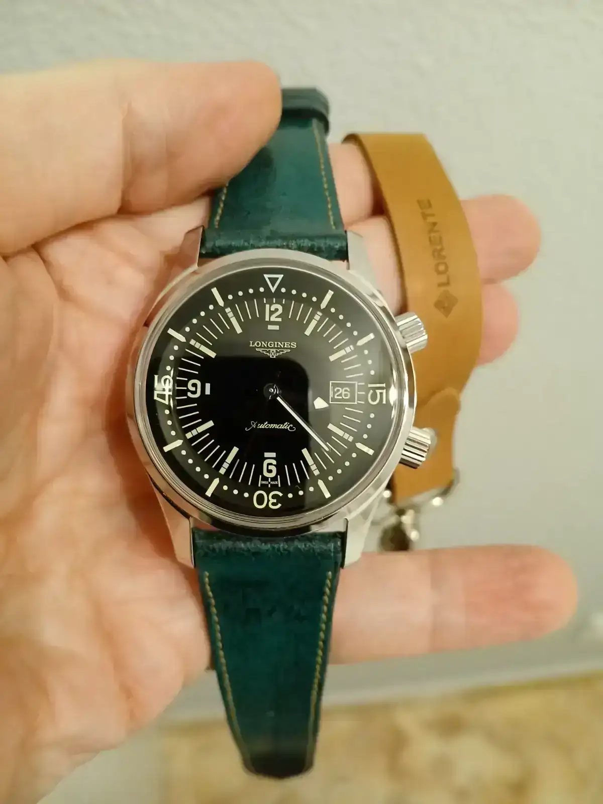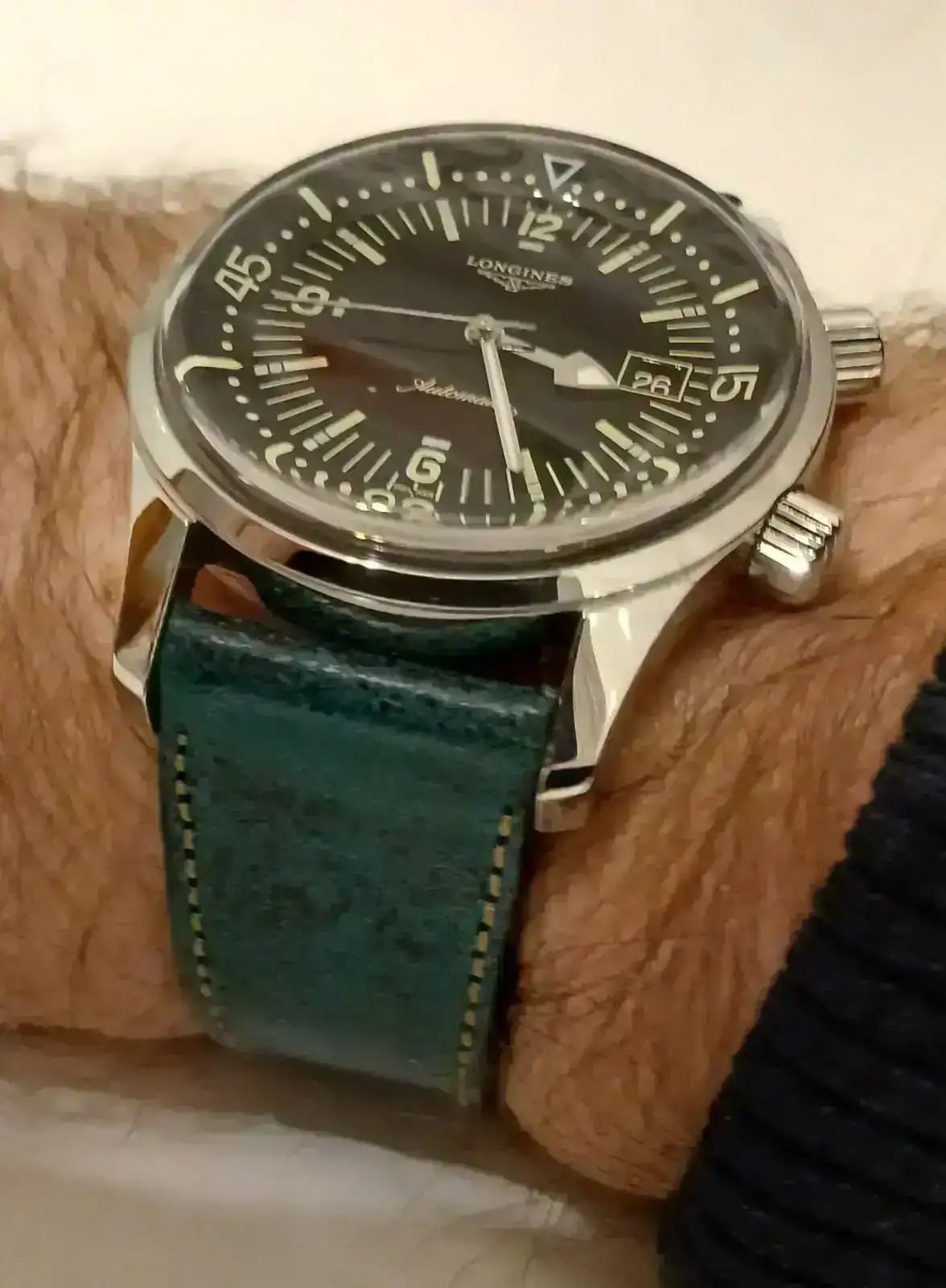 La correa la pensé para el Longines LD, que al final llevo siempre con su milanesa y quería algo diferente, de calidad y con aspecto envejecido. Opté por el modelo Chester y en color petrol.
