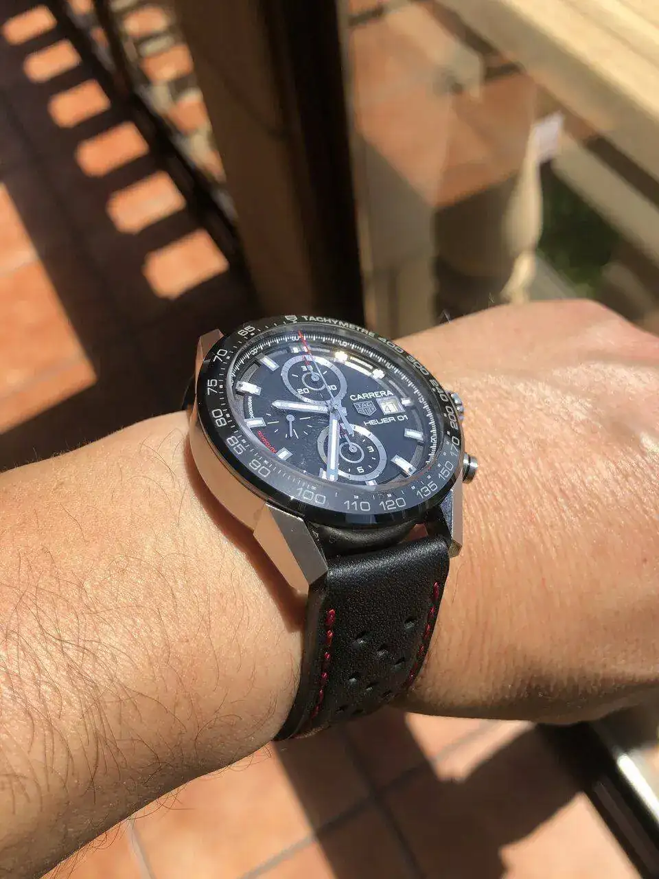 Lo veo muy deportivo para una piel marrón. Yo mantendría el negro con pespuntes rojos