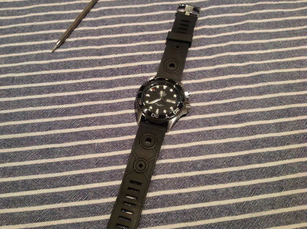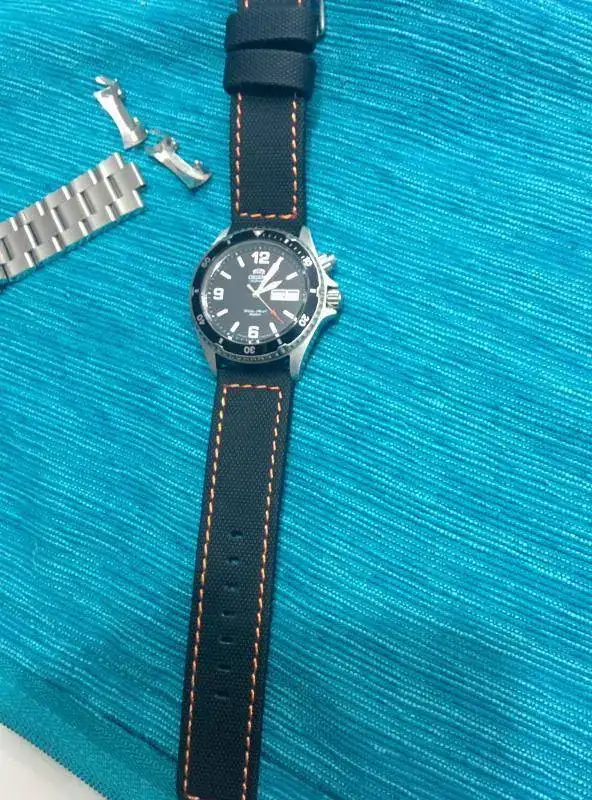 El mio es el azul , y con una correa de silicona azul con pespuntes en hilo blanco es una pasada....... El tuyo es negro ,creo , pues lo mismo pero en negro. Pruebalo y comenta. Si quieres te paso por m.p. La direccion alemana donde compré la mía......
