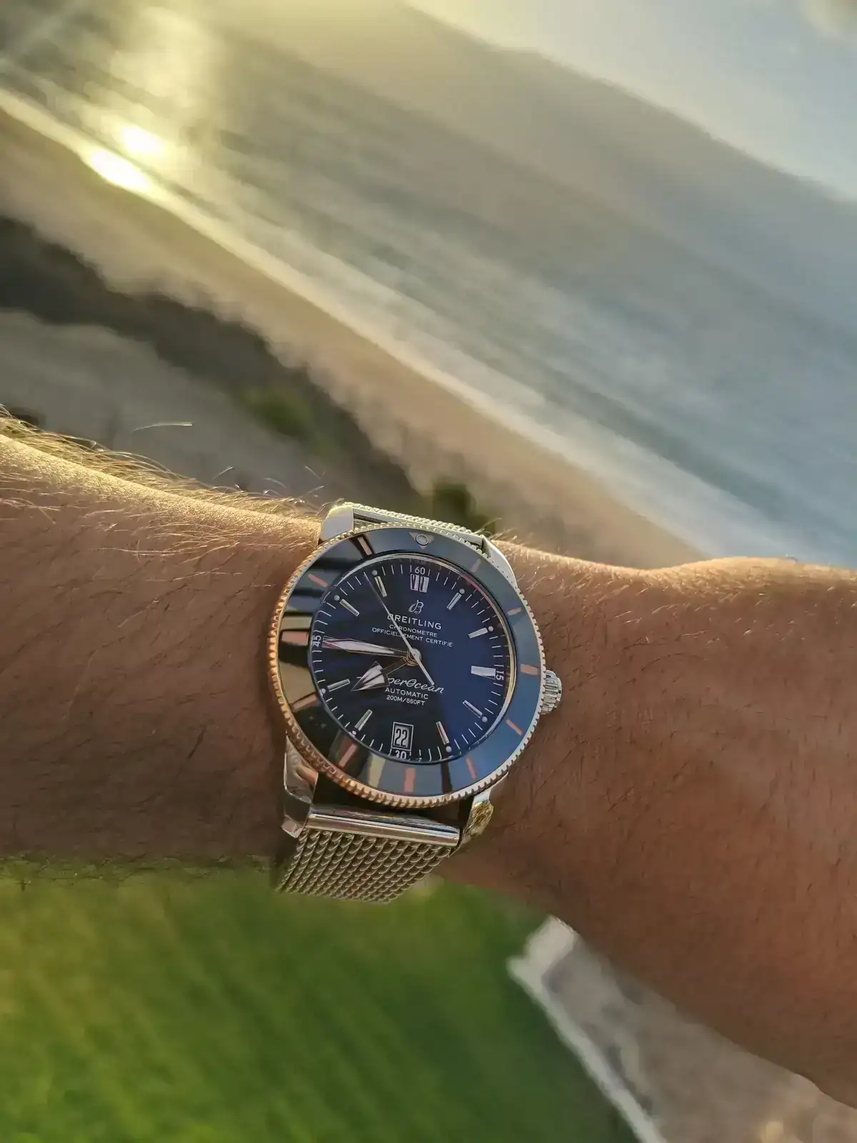 Buenos días compañeros, se acaba de incorporar a la colección este Breitling Superocean Heritage 42 con bisel verde y esfera azul con una tonalidad muy oscura.