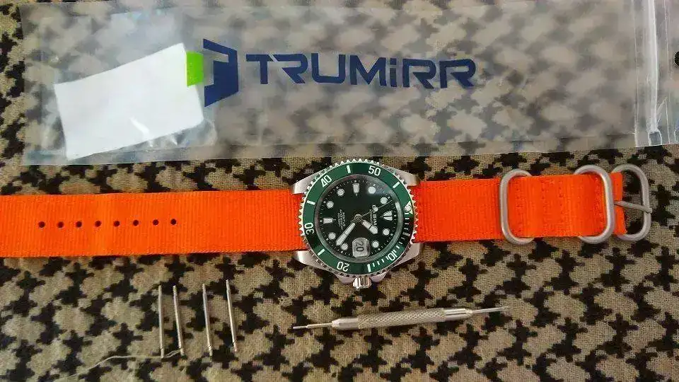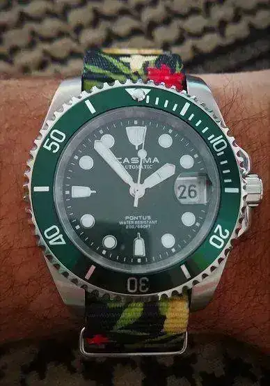 Lo "divertido" del tema es que aun habiendo buscado en algunas webs las medidas del Casima...donde en todas ponia 22mm....El jodio reloj es de 20mm (No se me ocurrio medirlo en casa, craso error)...jajaja... Así que o bien hago una ñapa o me tengo que buscar otra nato. No me preocupa cortarle 1mm por cada lado...pues es muy poco dinero...Pero es que no sé si es el color apropiado para este reloj. Aunque he de reconocer que si me gusta mucho ese naranja...Pero quizás para otra pieza de color...¿Negro? Se lo iba a poner a mi Citizen Orca...pero por el diseño de su caucho NO se puede...jejeje...El destino es así.