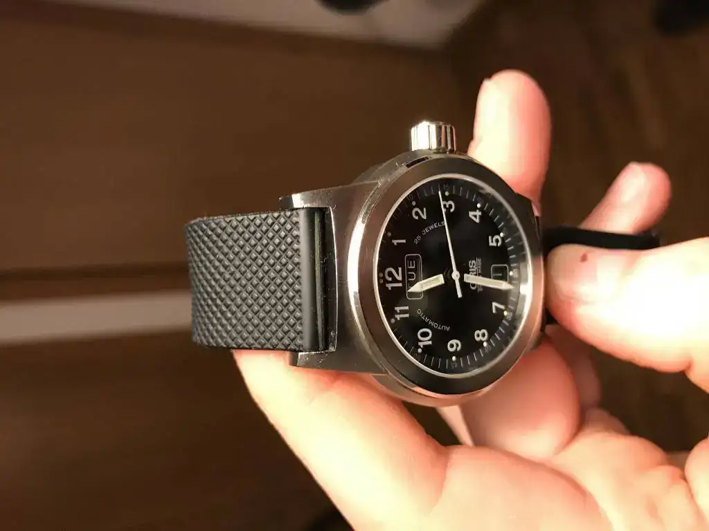 Buenas noches! Acabo de comprar un precioso Oris BC3 day date de 40 mm en el mercado de la segunda mano y estoy bastante conforme: estado prácticamente impecable con algún signo de uso y pagué por el 325€. Pero la correa de caucho con deployante venía adaptada para la muñeca del propietario y a mi me queda muy justa. Aunque el vendedor me mando otra parecida a la original para que pudiera cambiarla, no me quedo conforme y querría comprar una original de segunda mano, pero los precios son muy elevados y no hay surtido. Conocéis algún sitio al que pueda recurrir? Qué me puede pedir un distribuidor oficial por la original de caucho?