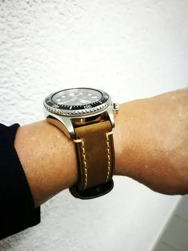 Hola compi, ponle esa correa de cuero marrón envejecido que le quedará muy bien.