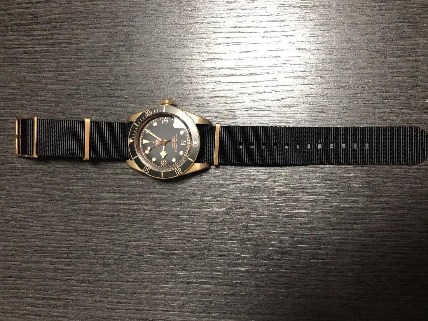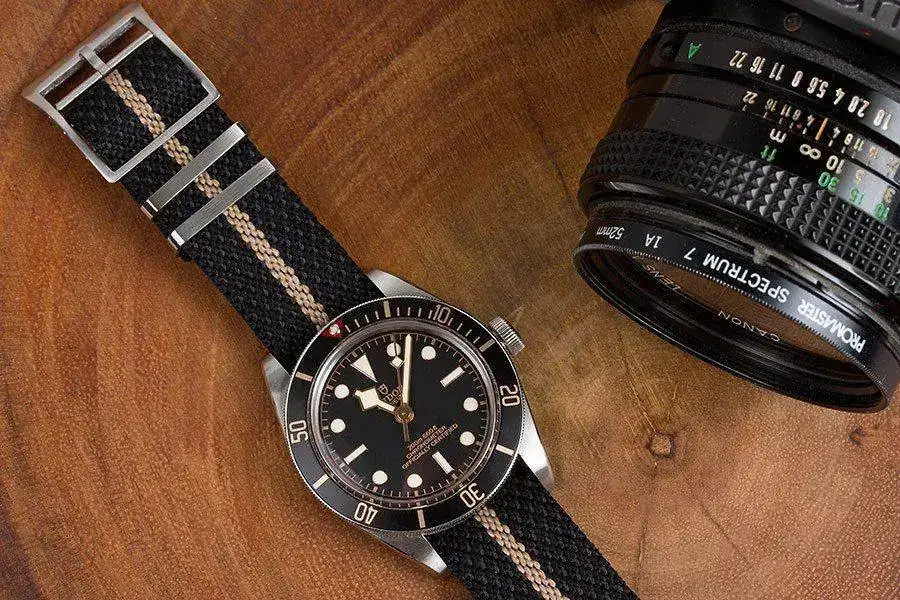 Tengo un Tudor [/FONT]BB[FONT=Verdana, Tahoma, Helvetica, Arial] Bronze esfera gris que vino con la correa de piel. Quiero una textil, creo que la que tiene Tudor es NATO. La medida de ancho es de 23 mm. podría usar 22 o 24 si no la hubiese[/FONT]