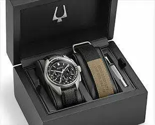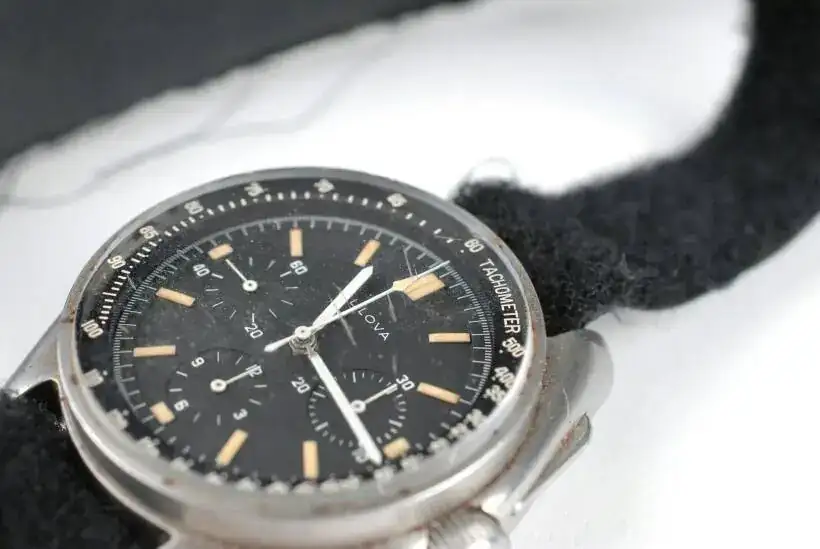 Bulova's special edition moon watch chronograph replica includes two straps, including a replica Velcro strap.#(Bulova)