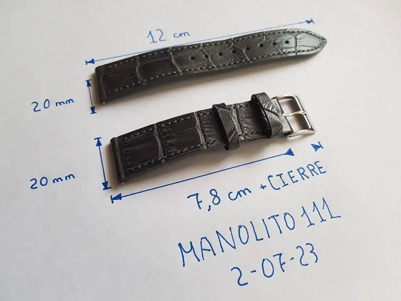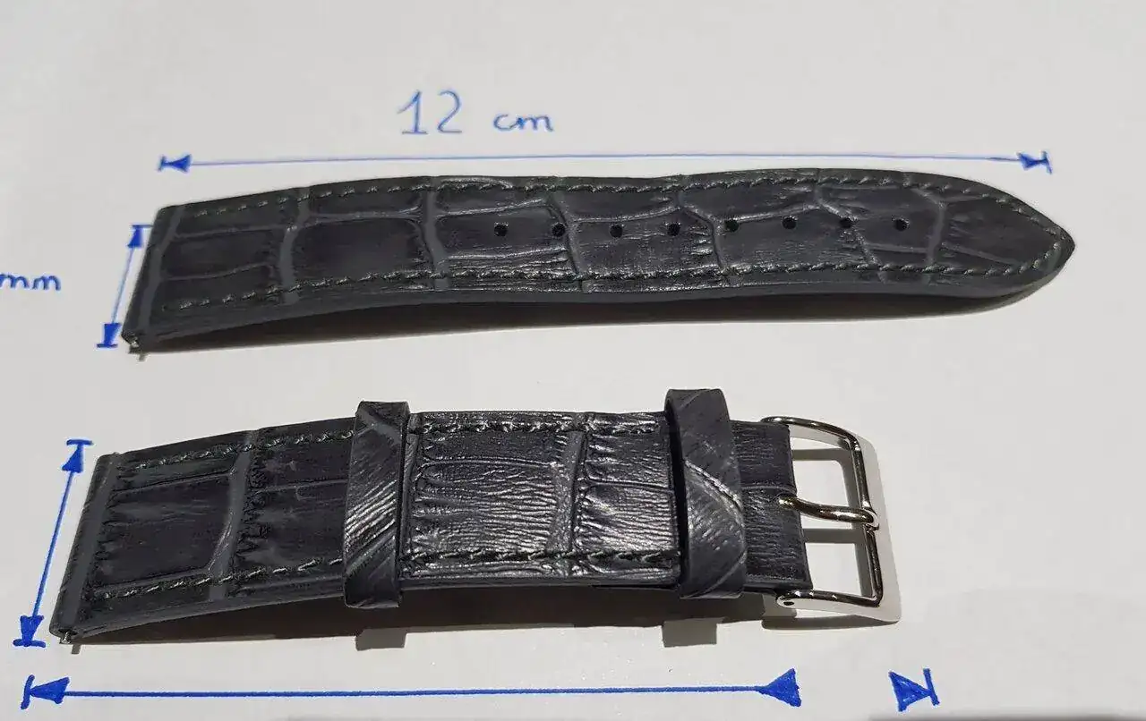 Su longitud es de 12cm / 8cm según su web pero al medirla se queda en 7,8 cm. https://zeloswatches.com/products/grey-crocodile-embossed-leather-strap-20mm?variant=5097490120731