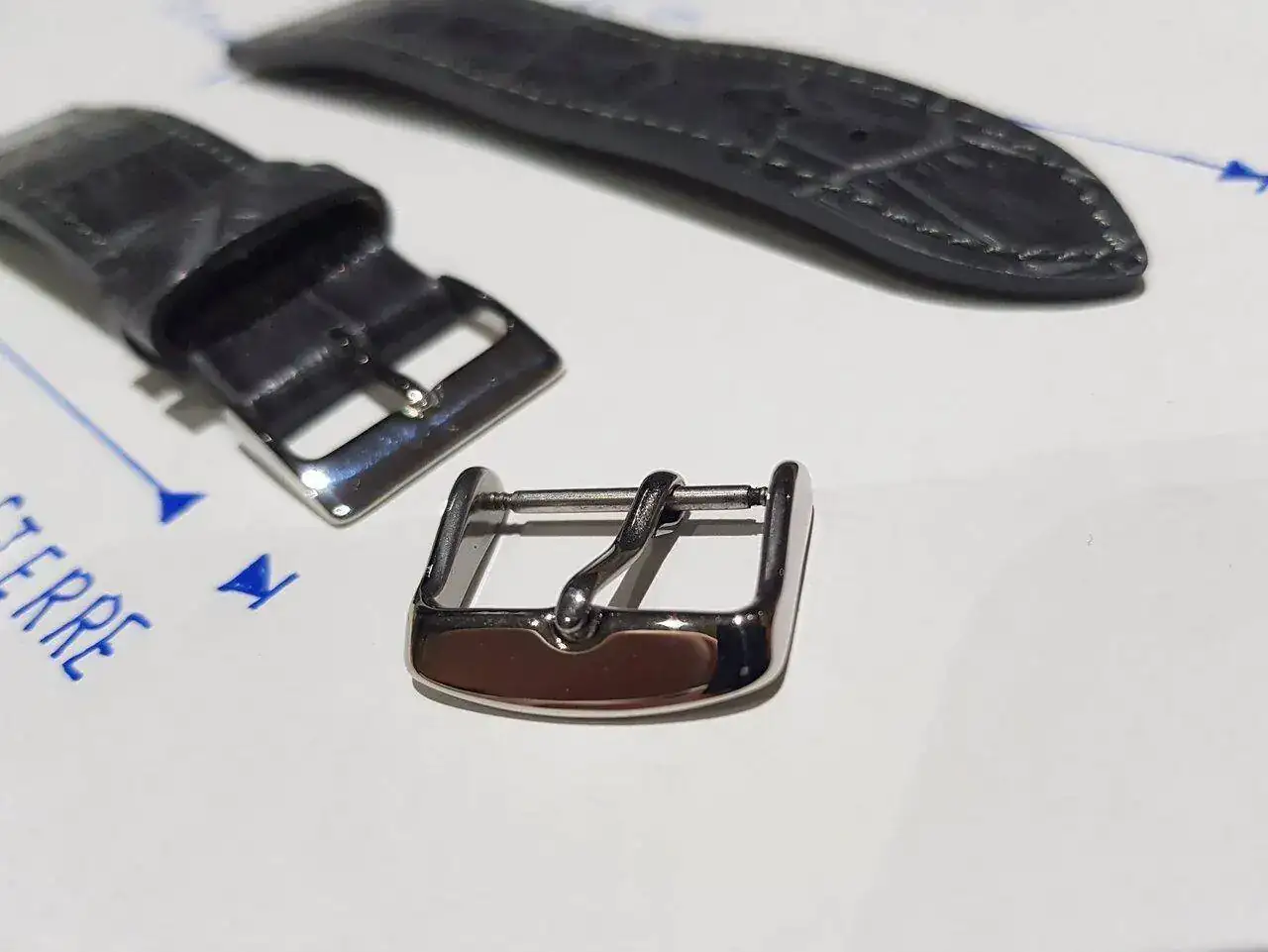 Hola amigos,pongo a la venta esta correa Zelos de cuero imitando cocodrilo en color gris con fondo negro.