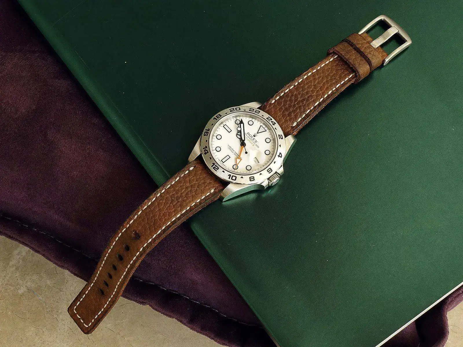 Correa pensada para la Serie Explorer de Rolex, pero adaptable a otros relojes.