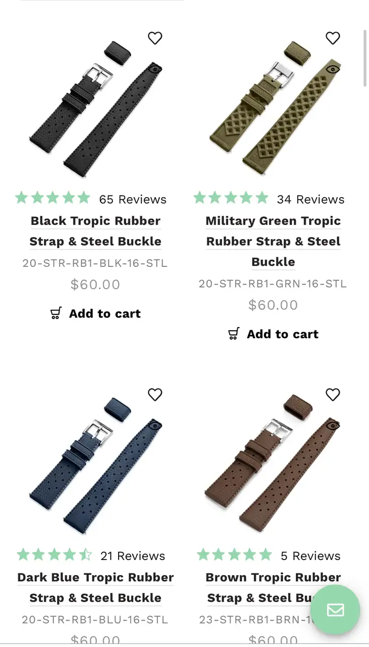 Pues estaba pensando en comprarle una correa de caucho a uno de mis relojes, pero como llevo poco tiempo en este mundo no me se de memoria las webs donde pueda comprar una aftermarket.
