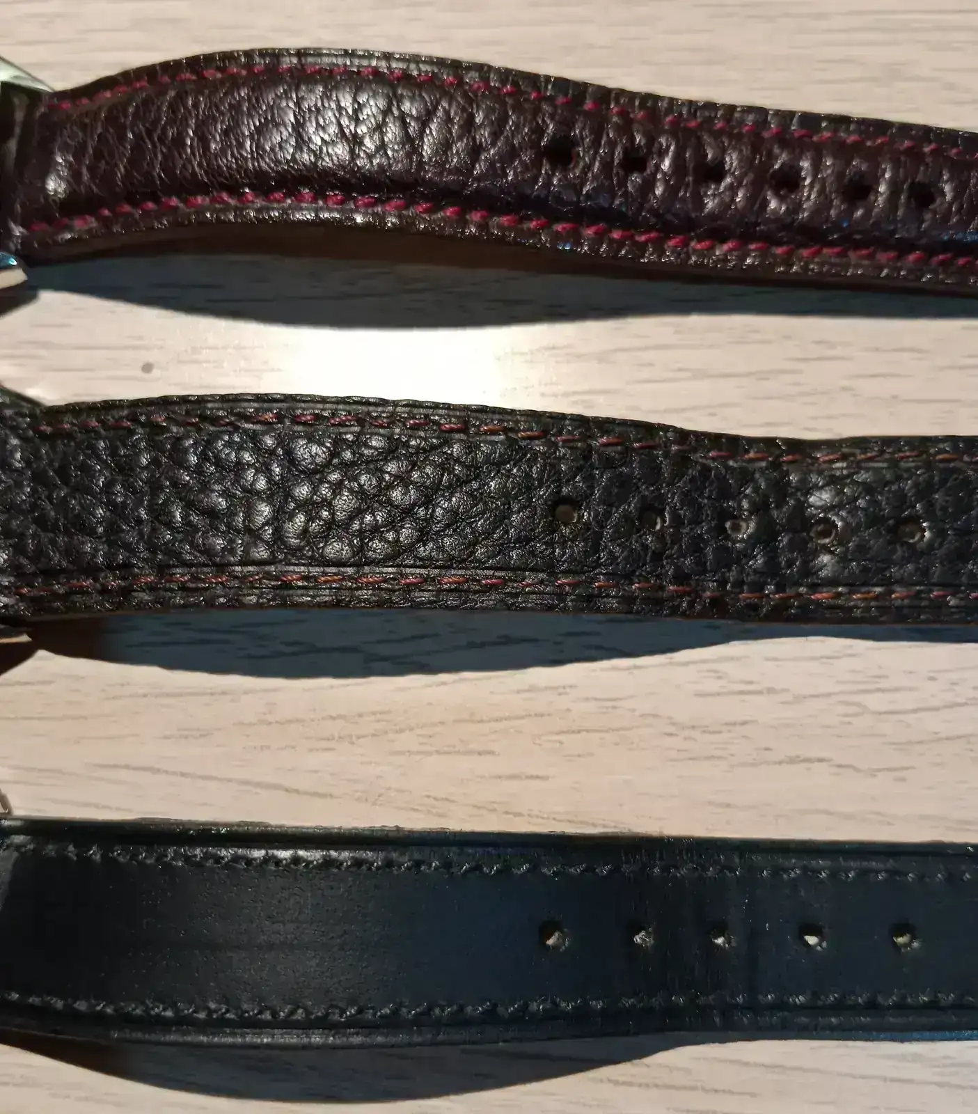 Otro "engaño" y este es peor que el anterior... es cuando en las fotos aparecen correas con un acabado que no es el que te llega. Es decir, en la foto aparece piel calidad "aceitada" y exquisitamente teñida... Y luego te llega una correa aceptable en calidad, pero de color plano y aspecto soso.