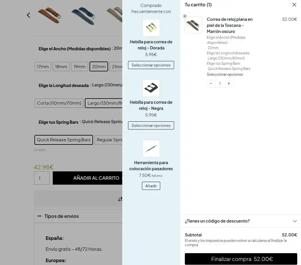 A través del chat de la web.¡Hola! Me gustaría comprar una correa de Lorente, pero tengo una duda. La correa que me gusta, en 18 mm, reduce a 14 mm en el cierre, lo que me obligaría a ir al modelo de 19 mm, que reduce a 16 mm, para poder acoplarle el cierre original.