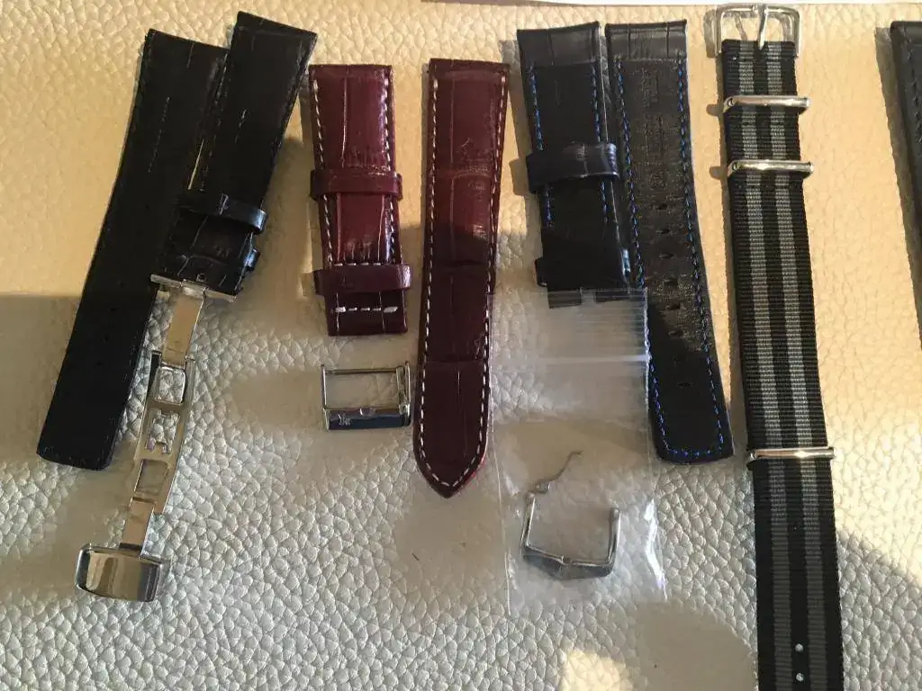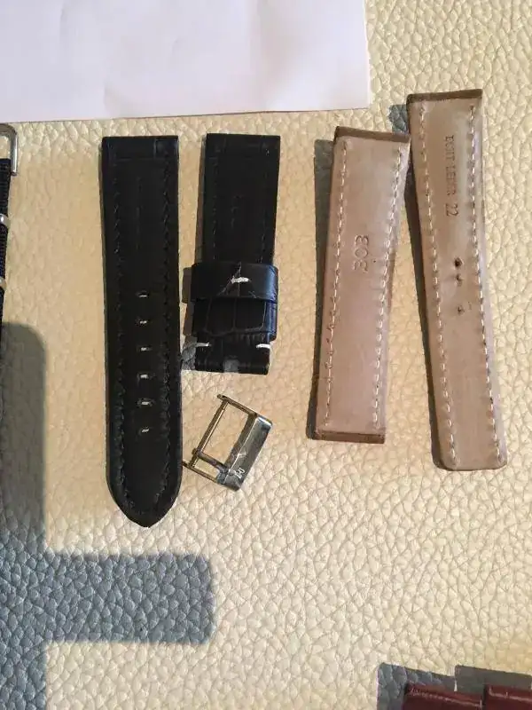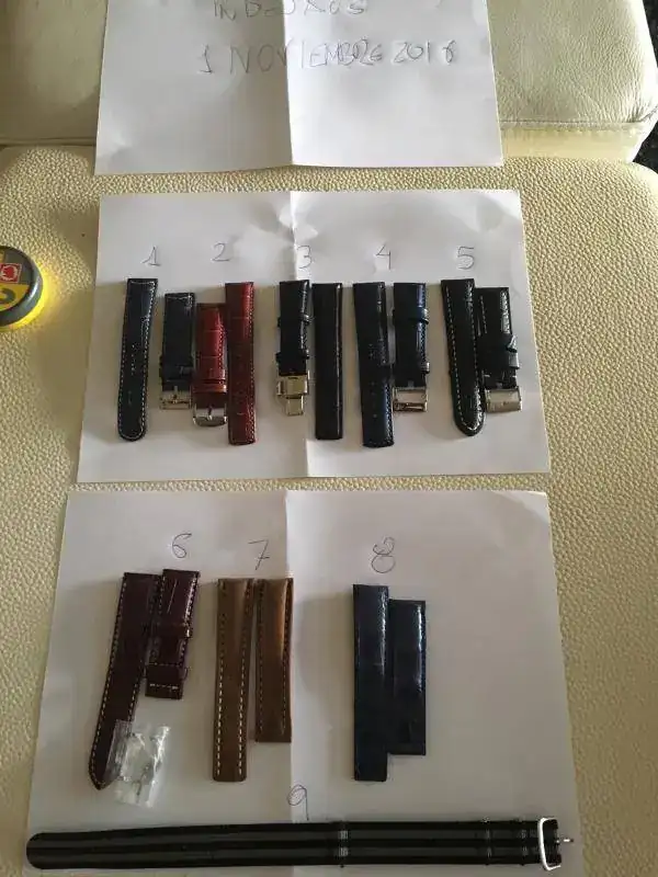 1. morellato azul, pespunte blanco - beige. me la iba a quedar, pero no. se puso en un reloj, visto que no quedaba con la esfera, y al cajón.