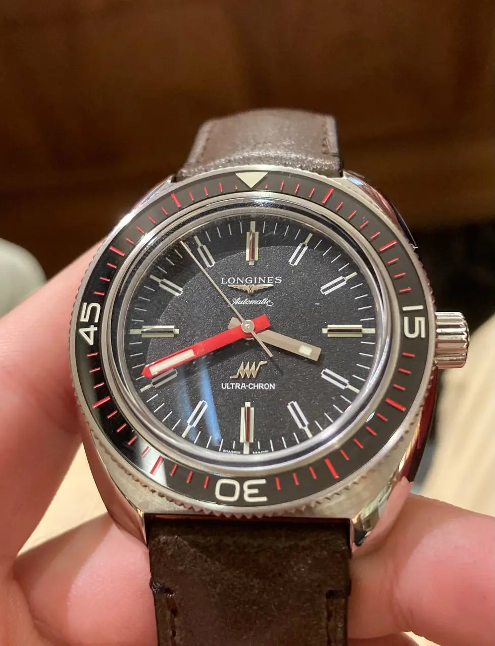 y el segundo es el más conocido Longines Ultra-Chron. Daba verdadero gusto ver la segundera trotar a 36.000 alternancias a la hora. Mención especial al bisel, me gustó mucho. No os dejéis llevar por sus 43 mm, su caja de cojín lo hace parecer de menor tamaño...