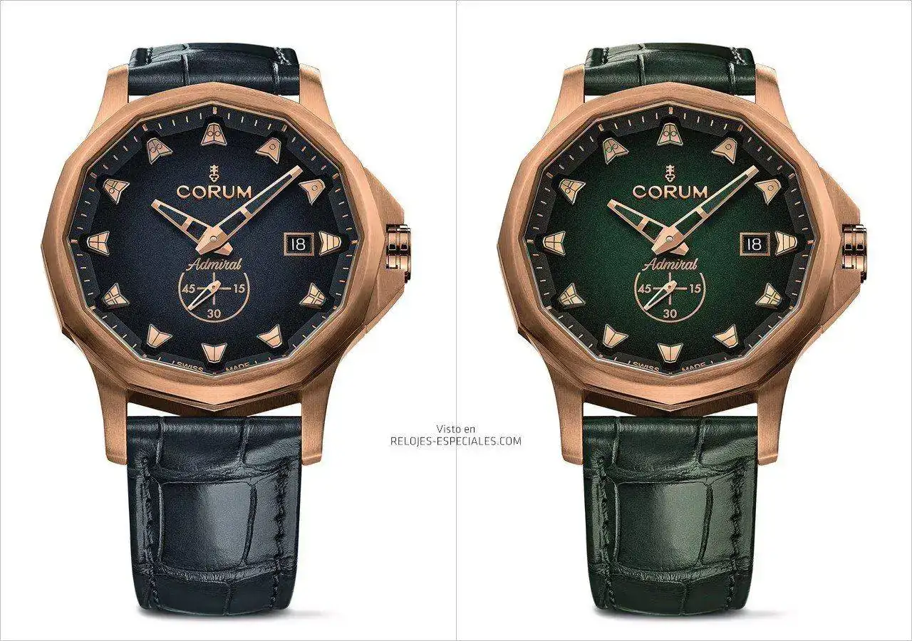 Dice la nota de prensa que "fiel a las raíces náuticas de la colección Admiral, el modelo presenta en la esfera 12 índices de hora en forma de gallardete. La paleta de colores náuticos azul marino o verde mar encajan a la perfección con las correas de cocodrilo en colores asociados." Es por esto que no se entiende muy bien que loa resistencia al agua sea de sólo 50 metros.