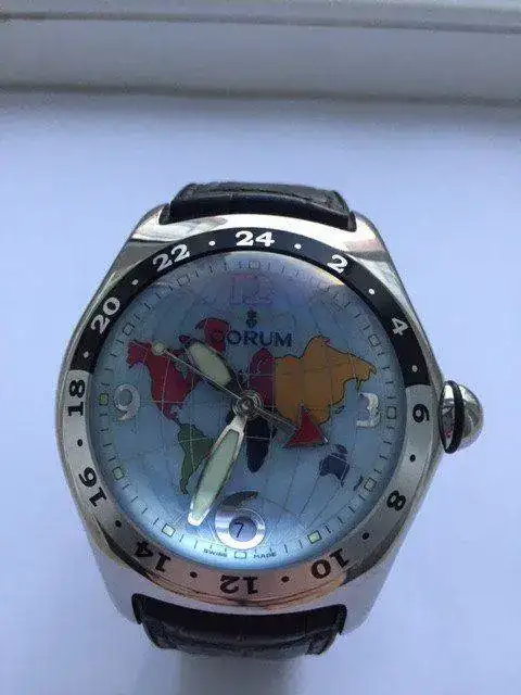 Tiene una calidad sobre todo en la esfera excepcional, y muy difícil de encontrar, de ahí que los coleccionistas los debieron adquirir y guardar, porque dificilmente se encuentran a la venta. También considero que CORUM fabricó muy pocas unidades con esfera Mapa Mundi y GMT Calendario, de ahí quizás su escasez.