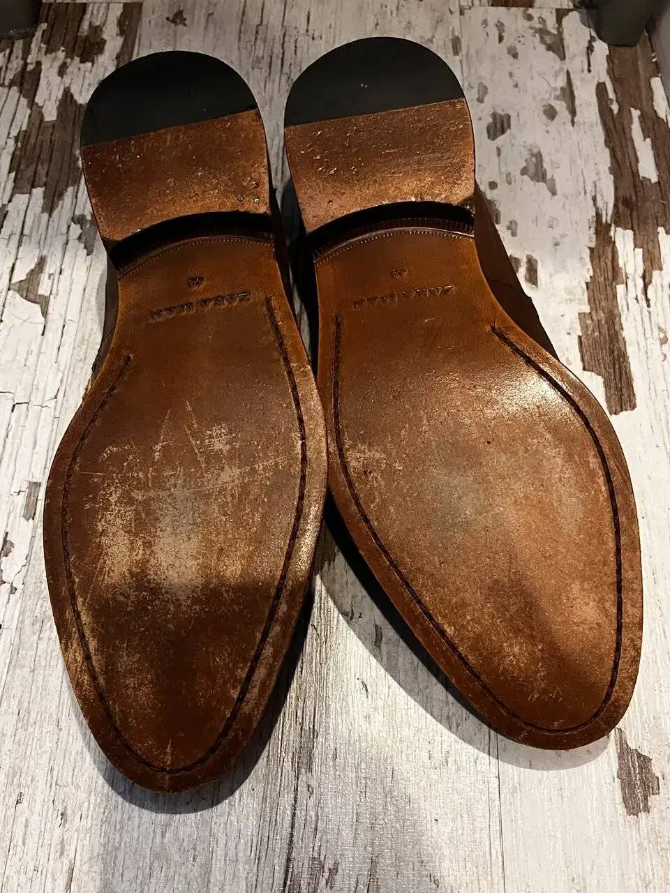 1. Zapatos zapatos orford picados de zara en cuero marron talla 42 usados 1 vez . 20 Euros