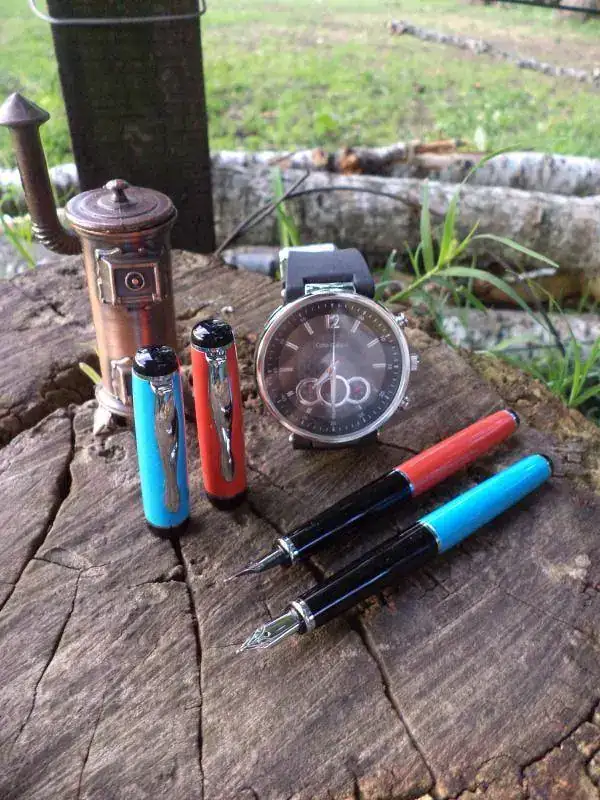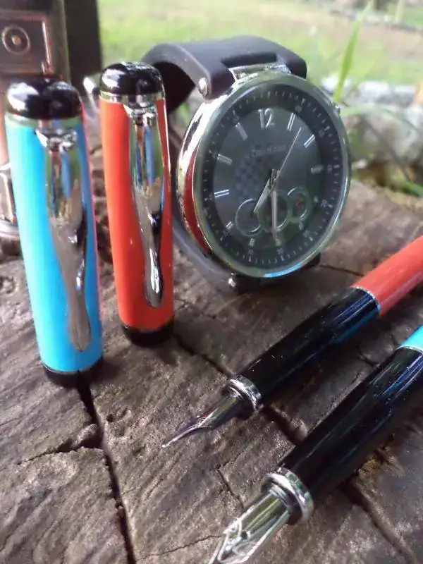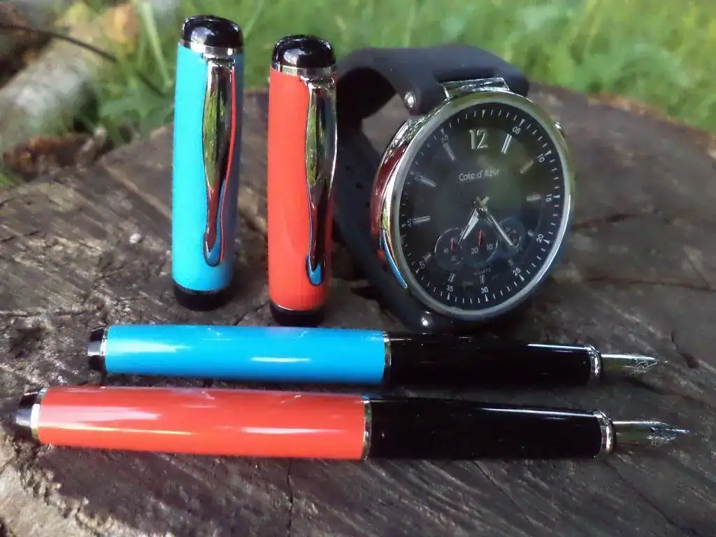 Confieso que no me desagrada en absoluto. Me queda enorme en la muñeca.... En las siguientes fotos este corazón japonés se anima aposar con dos plumas chinas - Simball Mini Kombi - : y otro chino confeso: un sacapuntas Die Cast