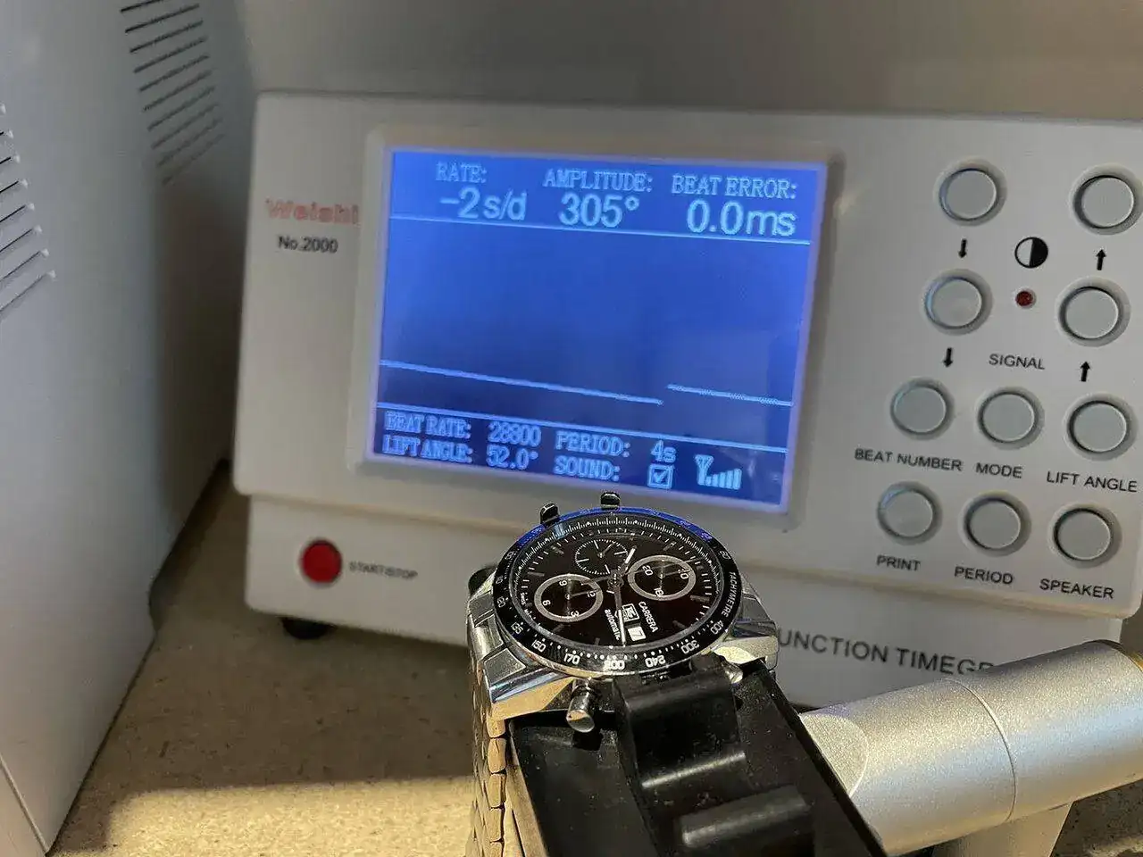 Doy 6 meses de garantía al reloj, en el crono-comparador arroja unos impresionantes -2 seg/día.