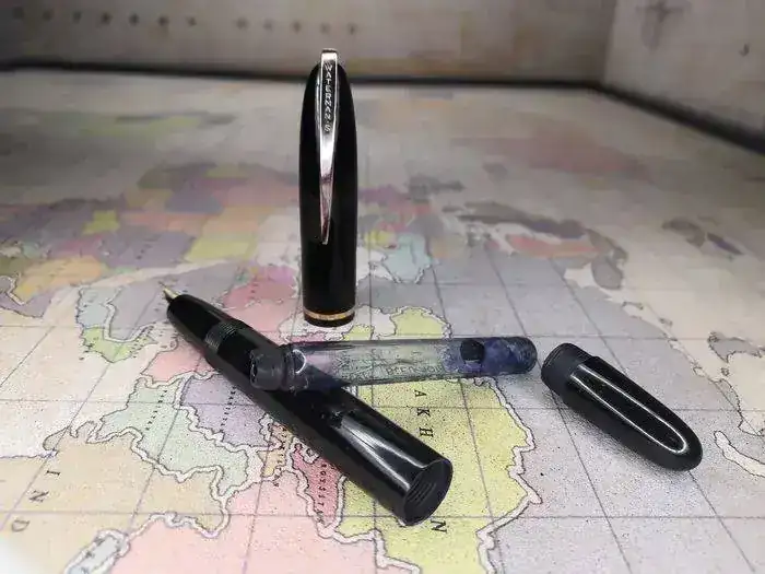 Acabo de recibir una Waterman vintage con cartucho de cristal. Creo que este sistema fue comercializado por Waterman durante los años 30 y 40, hasta que en los 50 se impusieron los cartuchos clásicos de plástico que conocemos.