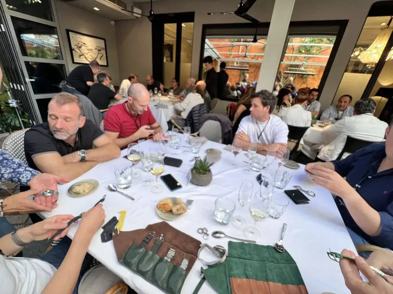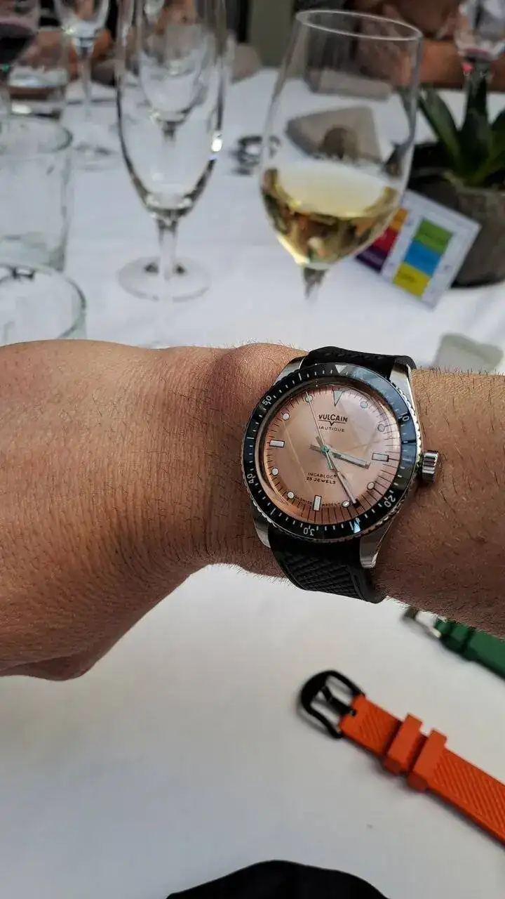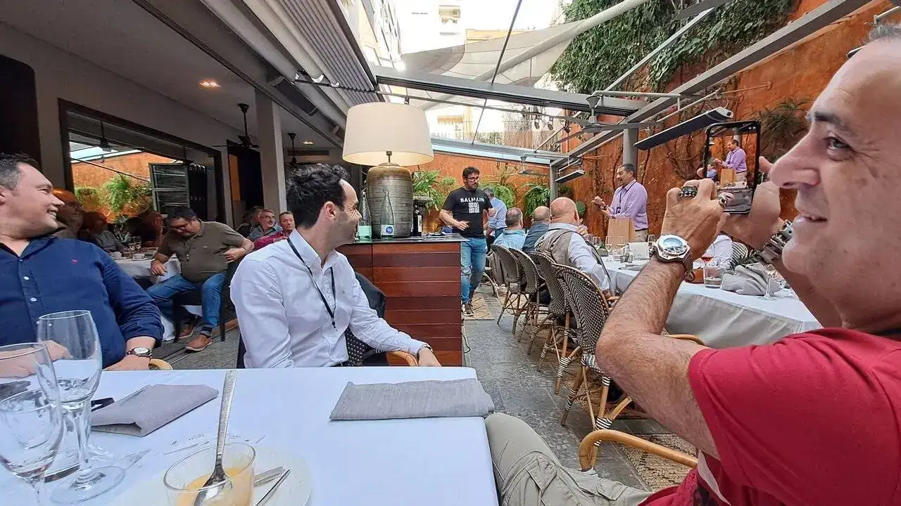 Bueno… ha sido un sábado desde luego diferente, era mi primera vez, y me he sentido como si conociera a muchos de vosotros desde siempre, nada más llegar a Rabat nos acoge un grupo de foreros de mi tierra natal, empezamos a ver relojes, incluso algunos que solo se ven en subastas Sotheby’s y similares, piezas solo a la altura de los foreros que las llevaban, si hablo de Paul Newman 😍el aperitivo completo y delicioso regado con un estupendo Ruinart Brut cortesia de Rabat, desde luego un auténtico lujo en el trato y en su atención por el detalle. La verdad es que se nos hizo corto, yo venía acompañado de dos no foreros pero aficionados a los relojes que también disfrutaron de lo lindo. Luego tras un ameno paseo llegamos al restaurante y las mesas eran aleatorias y claro veo a un Sr. con anillos, pulseras y un Omega Ploprof en la muñeca y digo este no es otro que el mismísimo autor de las malquereviews, a lo que abandono a mis acompañantes a su suerte y me paro a saludarle… cuál es mi sorpresa que me dicen hay un hueco en la mesa, siéntate con nosotros, allí conocí también a otro ilustre del foro nuestro querido @iVAMP con un sorprendente Aquastar precioso, además que la verdad la mesa estuvo genial nos tocaron un montón de regalos.