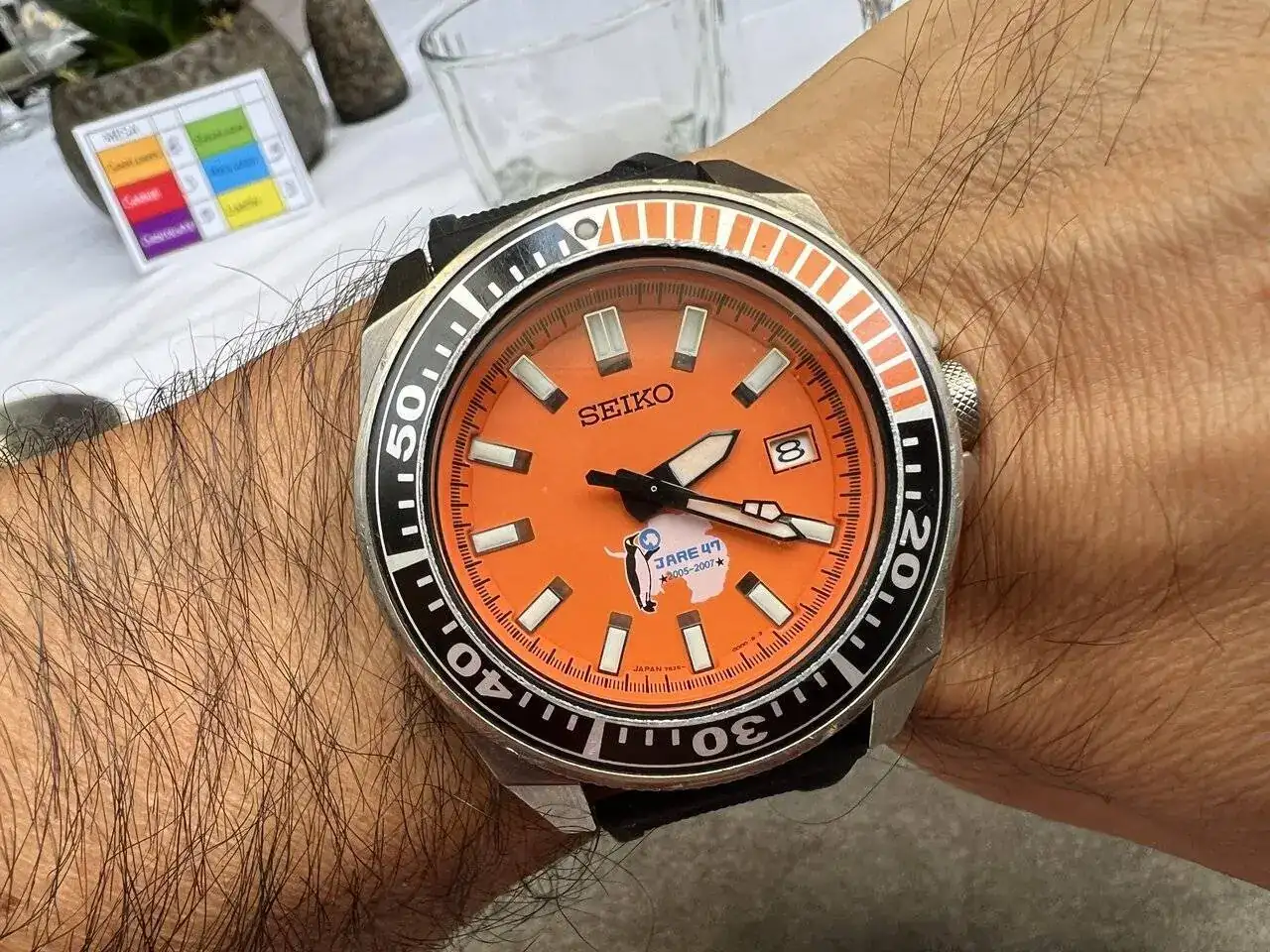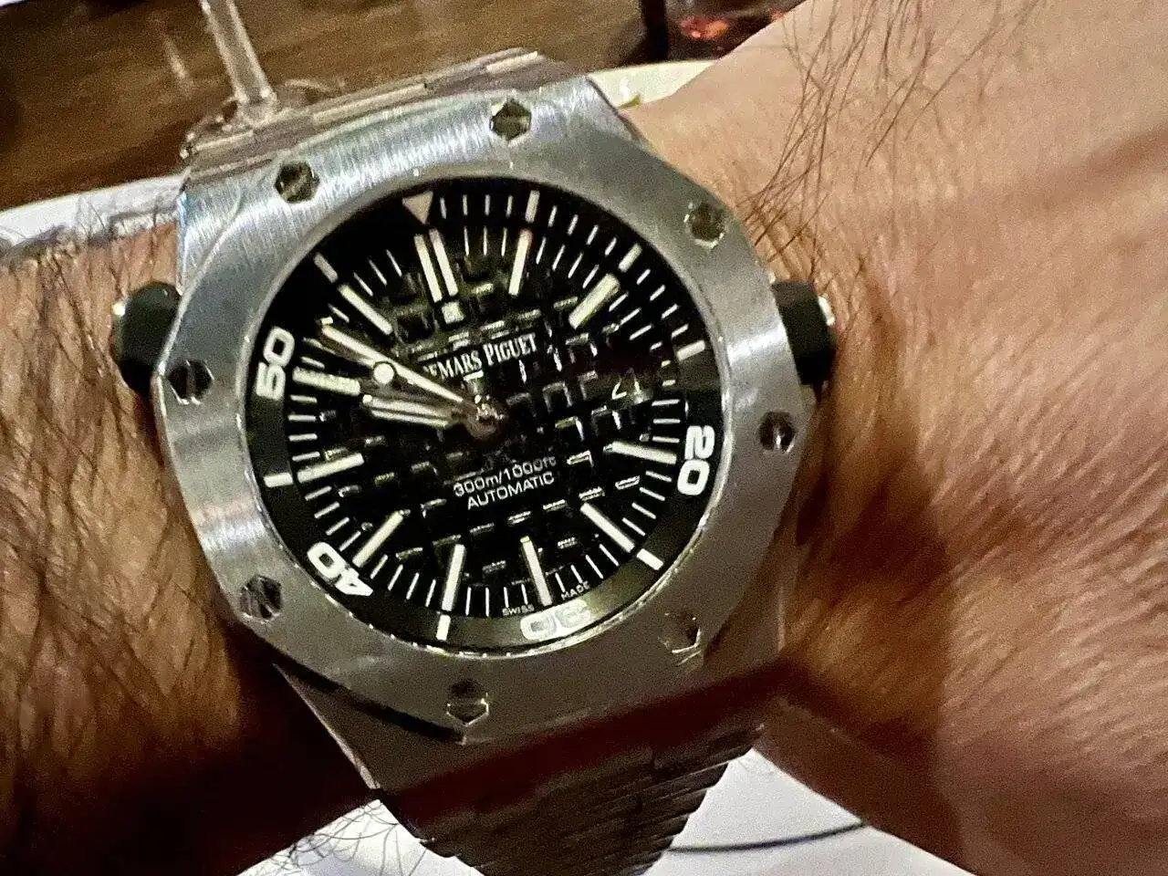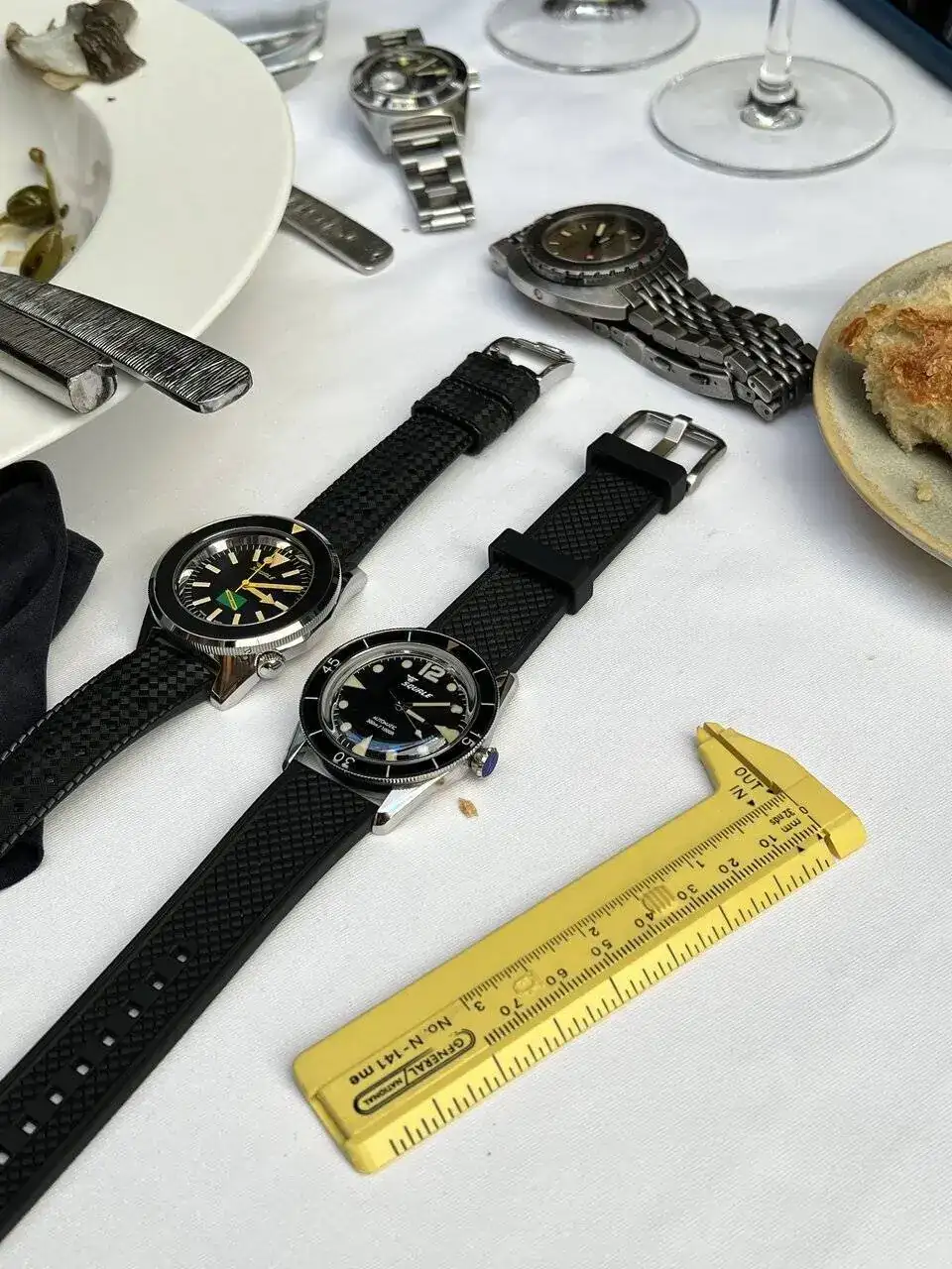 Bueno… ha sido un sábado desde luego diferente, era mi primera vez, y me he sentido como si conociera a muchos de vosotros desde siempre, nada más llegar a Rabat nos acoge un grupo de foreros de mi tierra natal, empezamos a ver relojes, incluso algunos que solo se ven en subastas Sotheby’s y similares, piezas solo a la altura de los foreros que las llevaban, si hablo de Paul Newman 😍el aperitivo completo y delicioso regado con un estupendo Ruinart Brut cortesia de Rabat, desde luego un auténtico lujo en el trato y en su atención por el detalle. La verdad es que se nos hizo corto, yo venía acompañado de dos no foreros pero aficionados a los relojes que también disfrutaron de lo lindo. Luego tras un ameno paseo llegamos al restaurante y las mesas eran aleatorias y claro veo a un Sr. con anillos, pulseras y un Omega Ploprof en la muñeca y digo este no es otro que el mismísimo autor de las malquereviews, a lo que abandono a mis acompañantes a su suerte y me paro a saludarle… cuál es mi sorpresa que me dicen hay un hueco en la mesa, siéntate con nosotros, allí conocí también a otro ilustre del foro nuestro querido @iVAMP con un sorprendente Aquastar precioso, además que la verdad la mesa estuvo genial nos tocaron un montón de regalos.