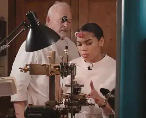 No lo sabia de esta visita de los Japones en el Atelier de Dufour, pero lo se que los Japones se rompen a llorar cuando lo ven. No es broma, es la verdad. Es como un dios para ellos. De dejo un foto con su hija, que trabaja con el ahora. Terminado la Ecole de Horlogerie en el Vallee de Joux.