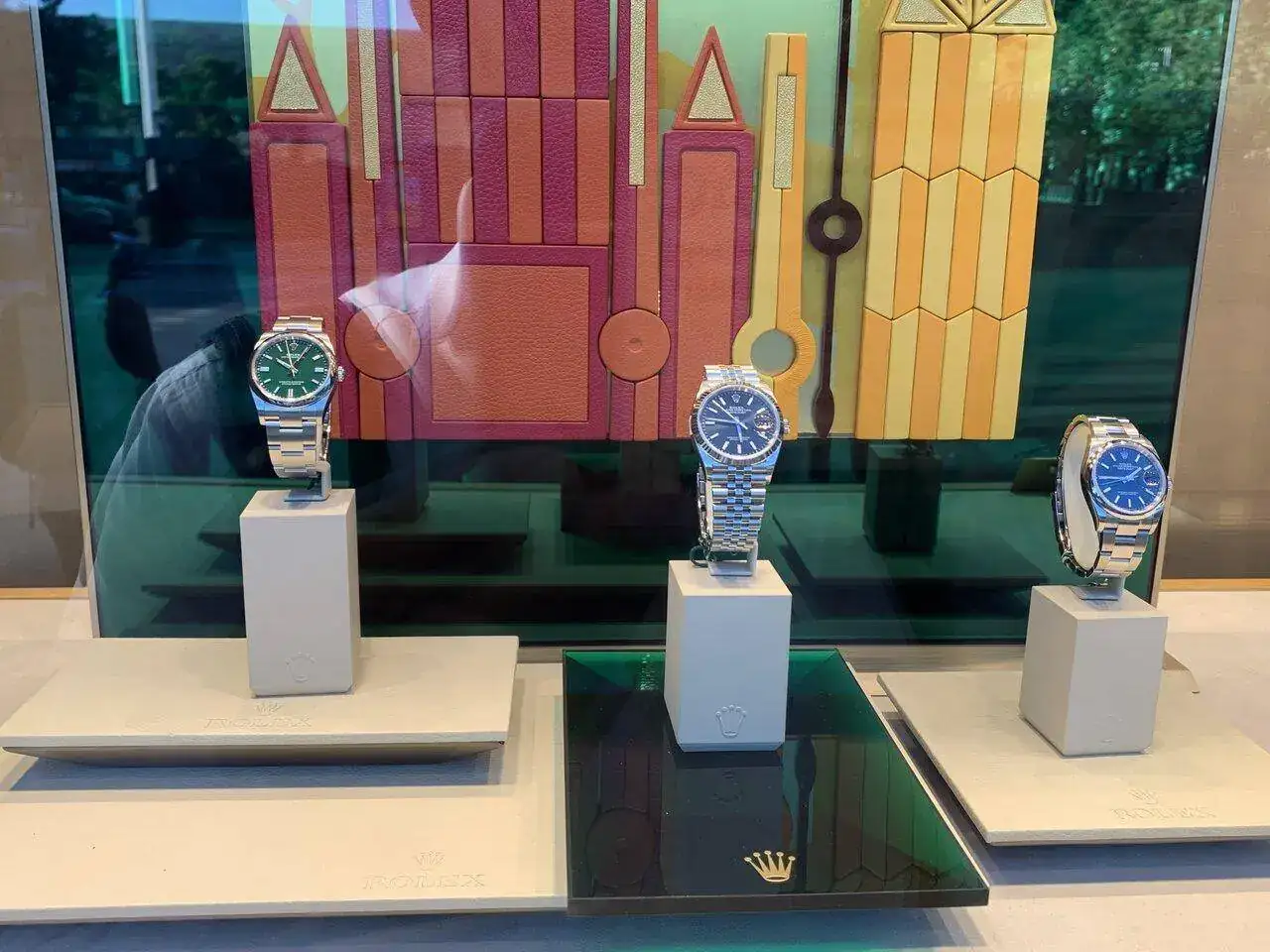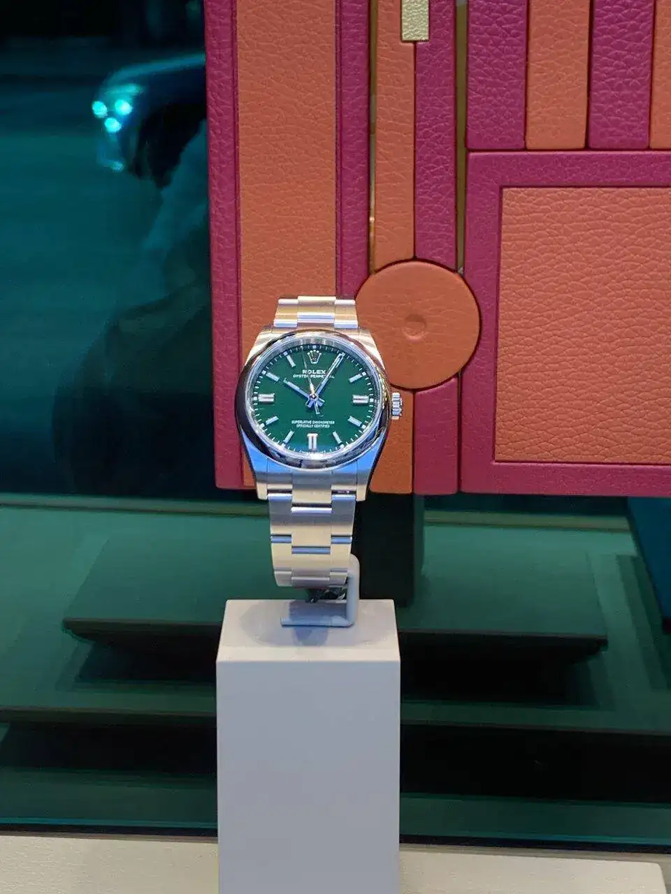 En Perodri Madrid hay ahora mismo un OP verde precioso en el escaparate. Y unos Datejust azules tremendos.