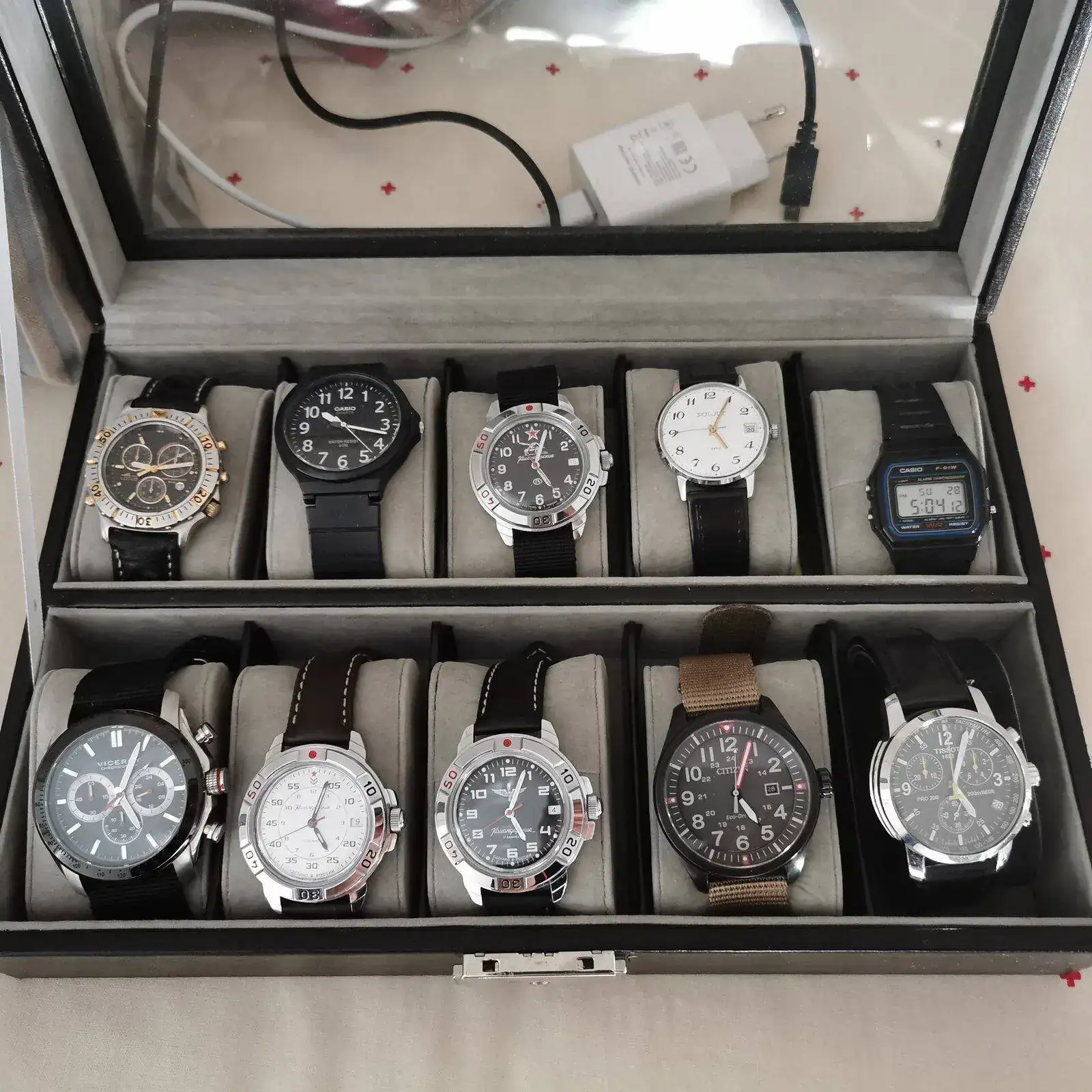 Buena elección. Enhorabuena.Después de algunos años por aquí, pasar por los rusos , gustarme los de menor medida, luego de mayor medida, solar, manual , automáticos.. creo que por fin encontré la paz relojil. No me he deshecho del resto porque son de poco valor. Para mí es un agobio tener demasiados relojes, me gustan todos, así que desde hace poco he decidido usar el 99,% del tiempo dos relojes. Dos semanas uno , y dos el otro. He elegido mi diver Certina Ds Action y el Seiko 5 military, así tengo uno de cada tipo, un diver y un militar. El.diver combina con todo y para el Seiko tengo diferentes correas y natos y va bien con todo.Por mi trabajo de oficina puedo usar los dos, voy en chinos o vaqueros, no necesito uno más de vestir. No me deshago de caja porque son de poco valor y lo usaran mis hijos. El Tissot se le di a mi hijo pequeño y al mayor le he dado el Citizen ecodrive a cambio del Seiko que ya le regalé pero que usa poco.Para alguna boda o parecido tiraré del Pojot, para deporte el Casio y Crono que es un regalo también lo usaré esporadicamente.Creo que estaré así una buena temporada. Os muestro los dos y el resto de caja, alguno lo usaran mis hijos de 20 y 19 años.